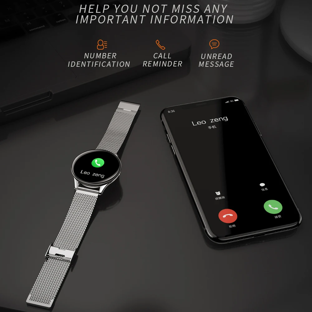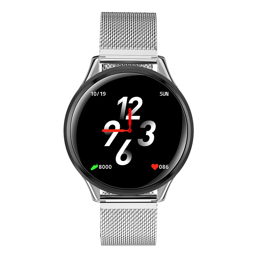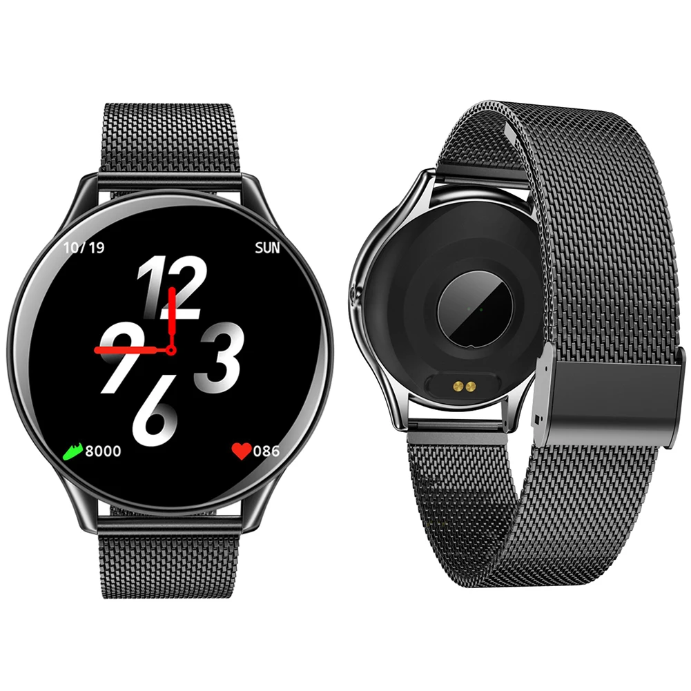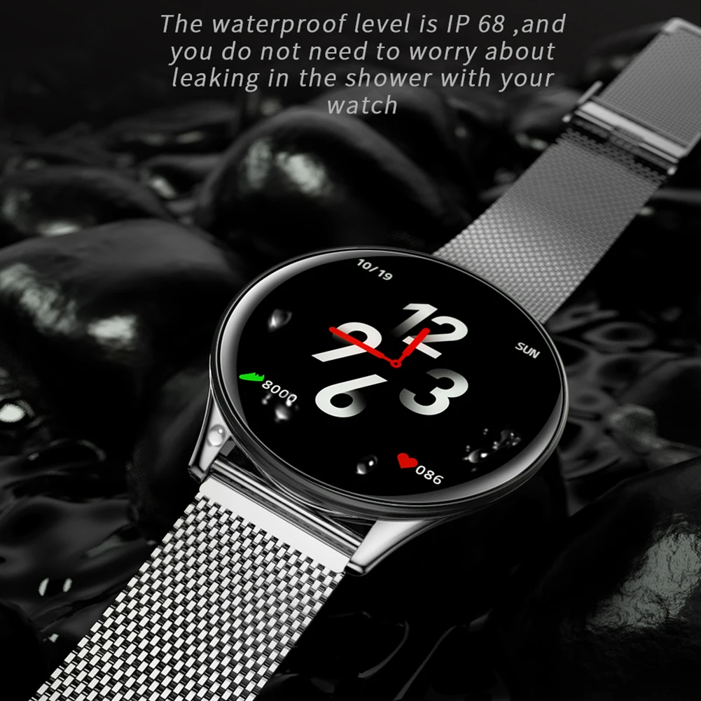 Высокой четкости ЖК-дисплей 1,3 дюймов 2.5D сенсорный экран с разрешением 240x240 пикс. Изготовлен из закаленного стекла циферблата и стальной ремешок для часов, высокое качество и долговечность.