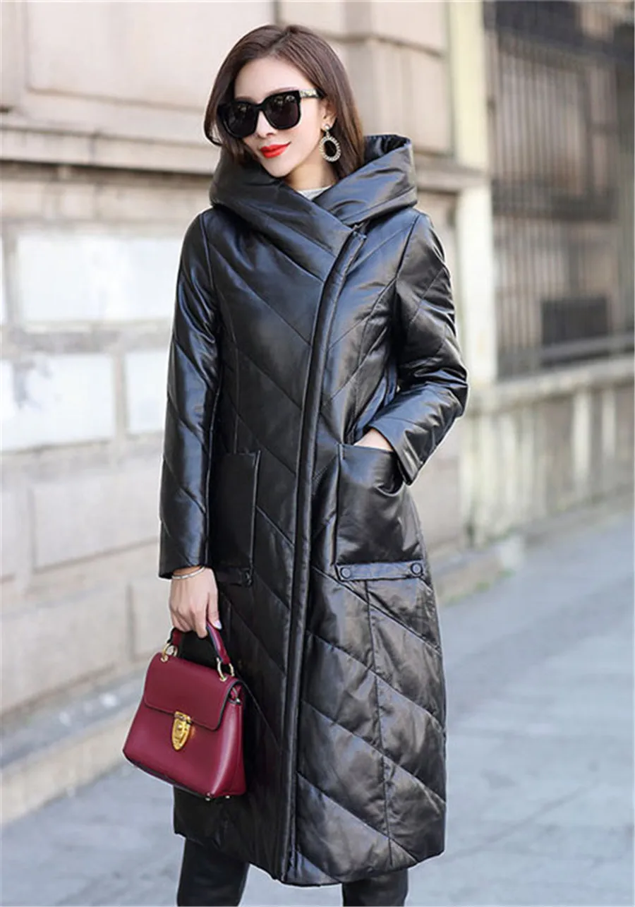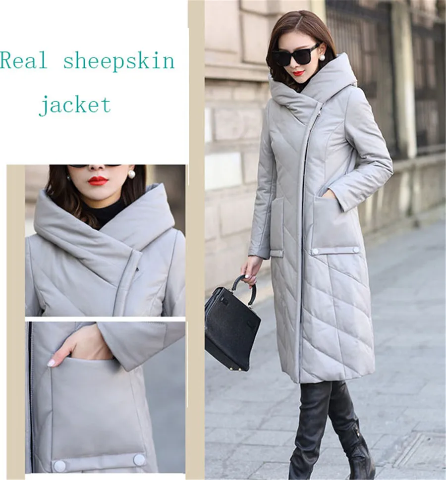 Женская куртка из натуральной овечьей кожи, женская зимняя куртка на утином пуху, пуховик с капюшоном, женские парки