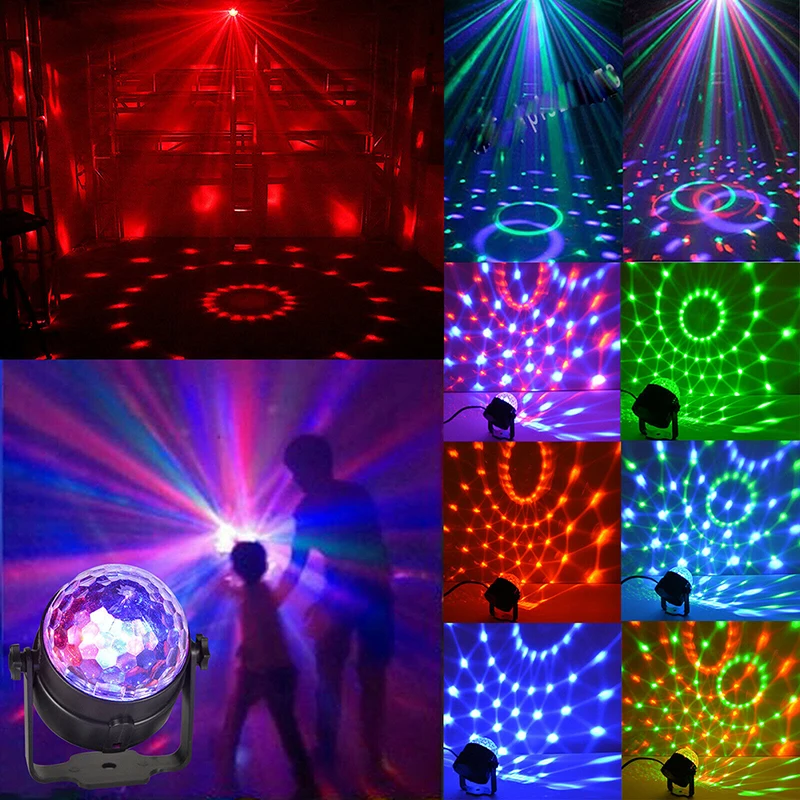 Яркий светильник для дискотеки с 7 режимами: светильник для дискотеки легко выбрать однотонные или разноцветные с помощью удобного пульта дистанционного управления. (Красный, зеленый, синий, красный/зеленый, красный/синий, зеленый/синий, или все цвета вместе).
