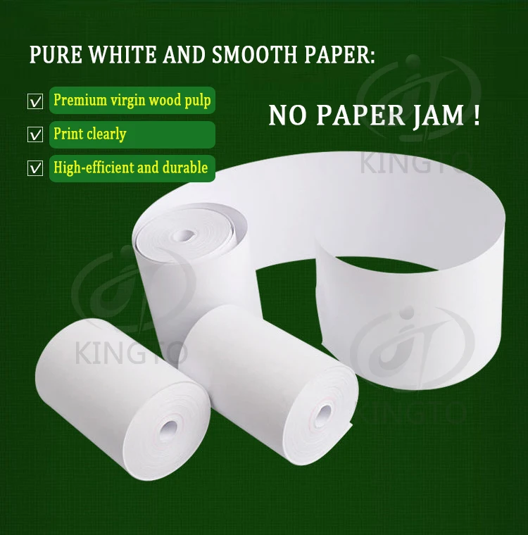 100% целлюлозная древесина -Чистый белый и гладкая поверхность, высокая яркость С самой низкой потерей на головках принтера -Четкое и глубокое тепловое изображение -Плавно с доставкой бумаги, без замятия бумаги -2 ~ 5 лет жизни изображения