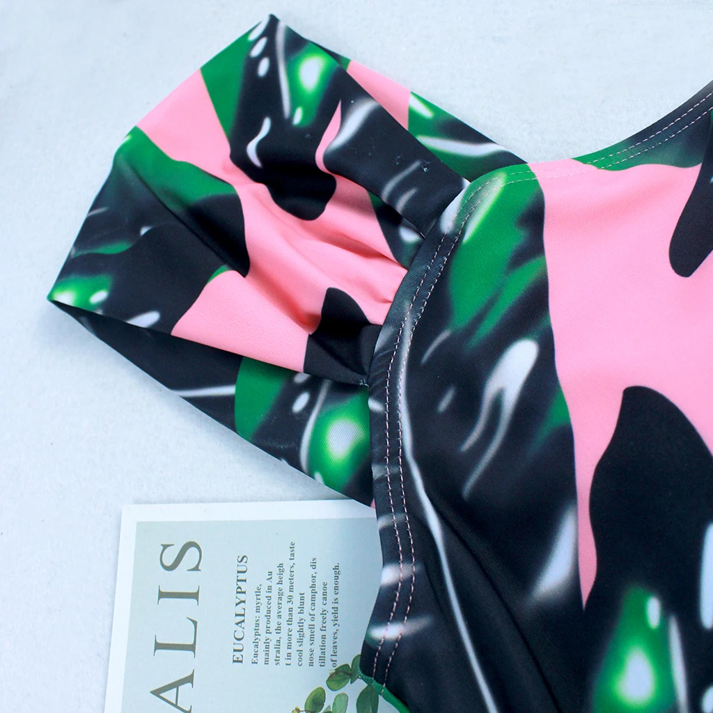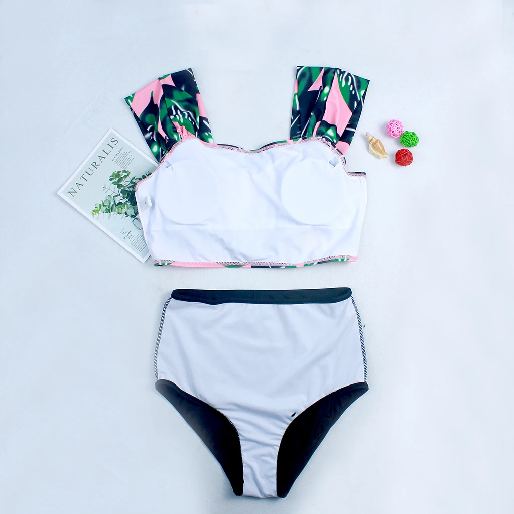 Новый женский комплект бикини с принтом листьев, купальный костюм из двух предметов, купальный костюм с широкими лямками и высокой талией, купальный костюм с вырезами, купальный костюм