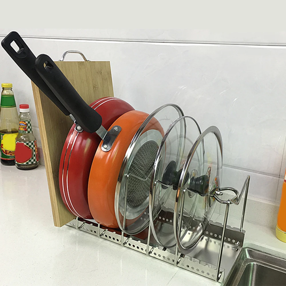Кастрюля стеллаж для выставки товаров подходит для горшка, лоток, разделочная доска, для крышек кастрюль и так далее, который является идеальным для хранения помощник на вашей кухне.