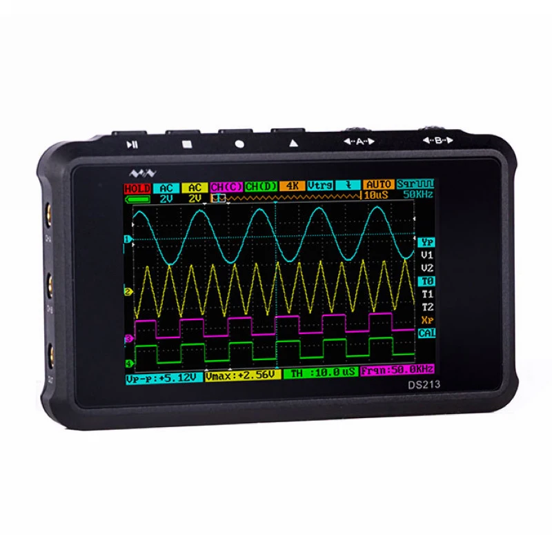DS213 мини нано портативный осциллограф 100 MSA/s 4 канала 3 "ЖК-дисплей цифровой USB осциллограф карманный размер с X1 X10 зонд.