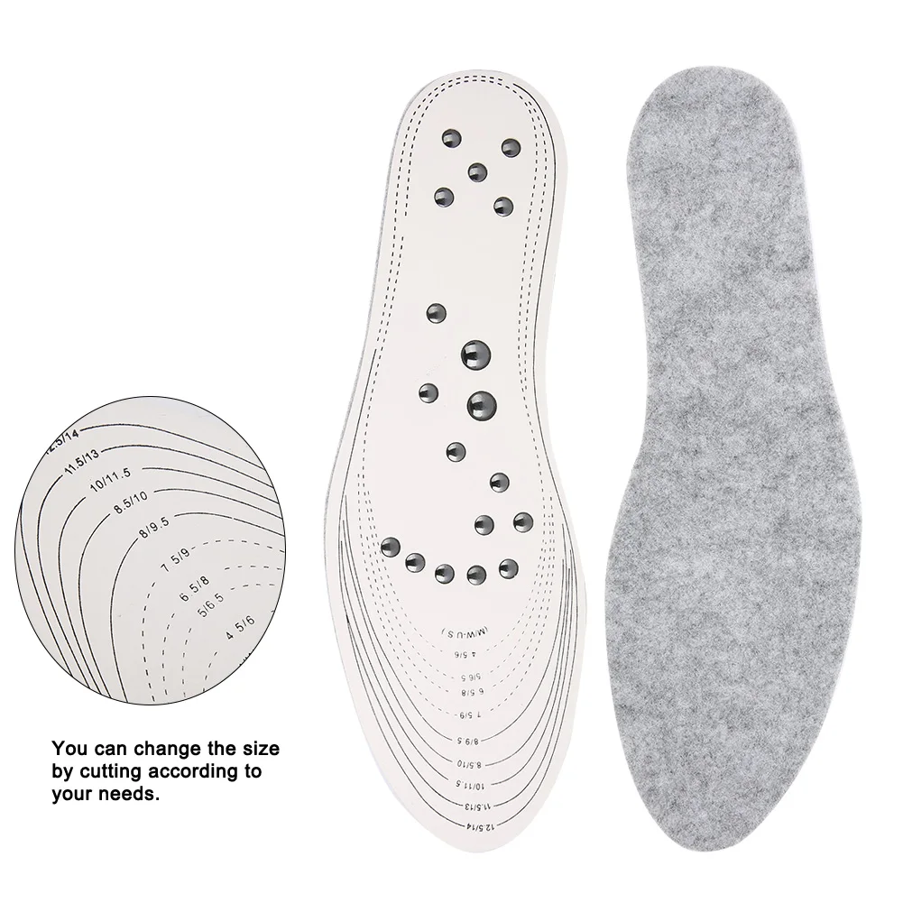 Изготовлен из высококачественной пены памяти, удобный и прочный. Магнитный дизайн стельки может покрывать несколько точек акупунктуры стопы, массаж может укрепить здоровье и противостоять больным. Это эффективно способствует циркуляции крови и расслабляет тело.