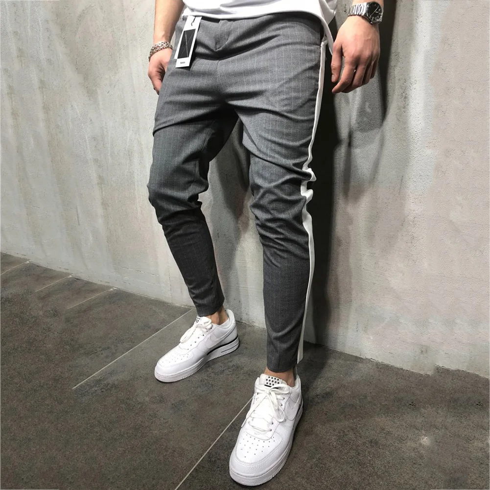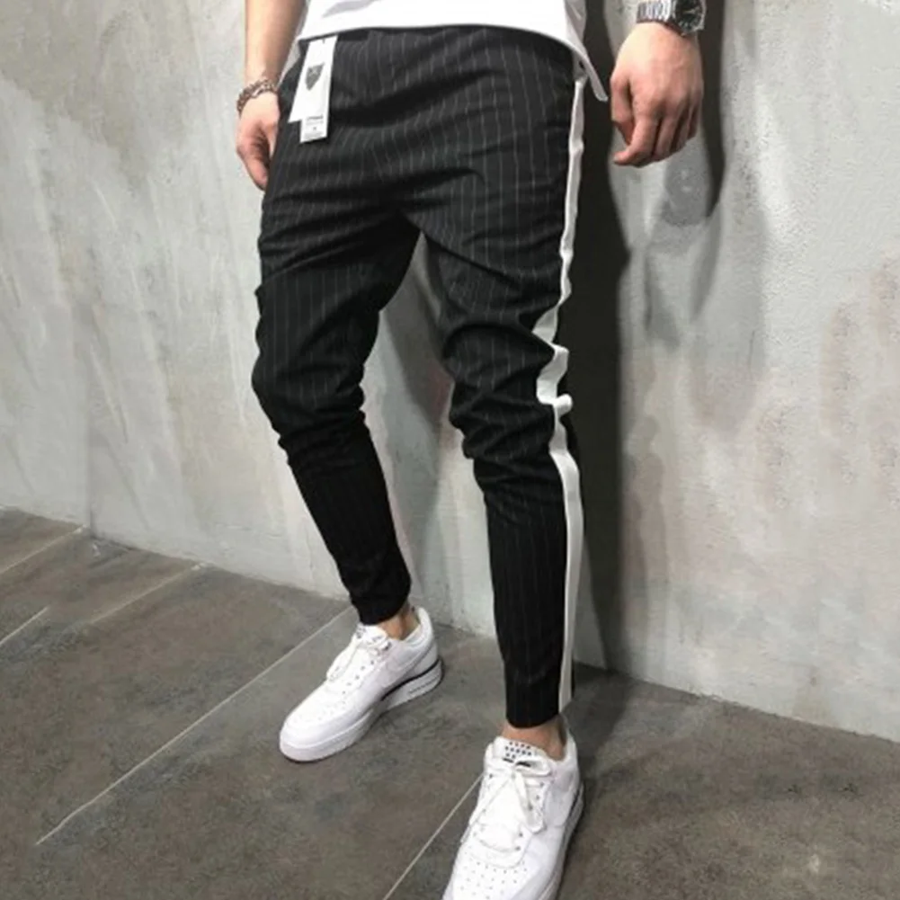 Мужские спортивные штаны в полоску, повседневные спортивные штаны для бега, длинные брюки-карандаш, спортивные брюки для мужчин, модные штаны, 2019