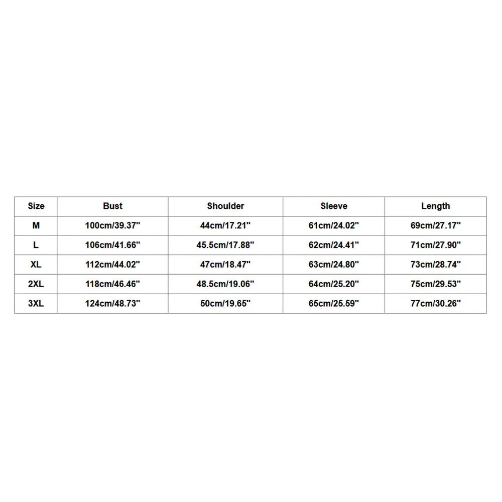 РазмерОбхват грудиСумка на плечоРукаваДлинаМ100 см/39,37"44 см/17,21"61 см/24,02"69 см/27,17"L106 см/41,66"45,5 см/17,88"62 см/24,41"71 см/27,90"XL112 см/44,02"47 см/18,47"63 см/24,80"73 см/28,74"2XL118 см/46,46"48,5 см/19,06"Высота голенища 64 см/25,20"75 см/29,53"3XL124 см/48,73"50 см/19,65"65 см/25,59"77 см/30,26"