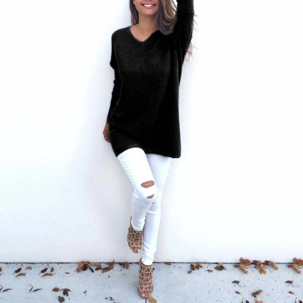Модный женский свитер с v-образным вырезом и длинным рукавом, повседневный вязаный свитер