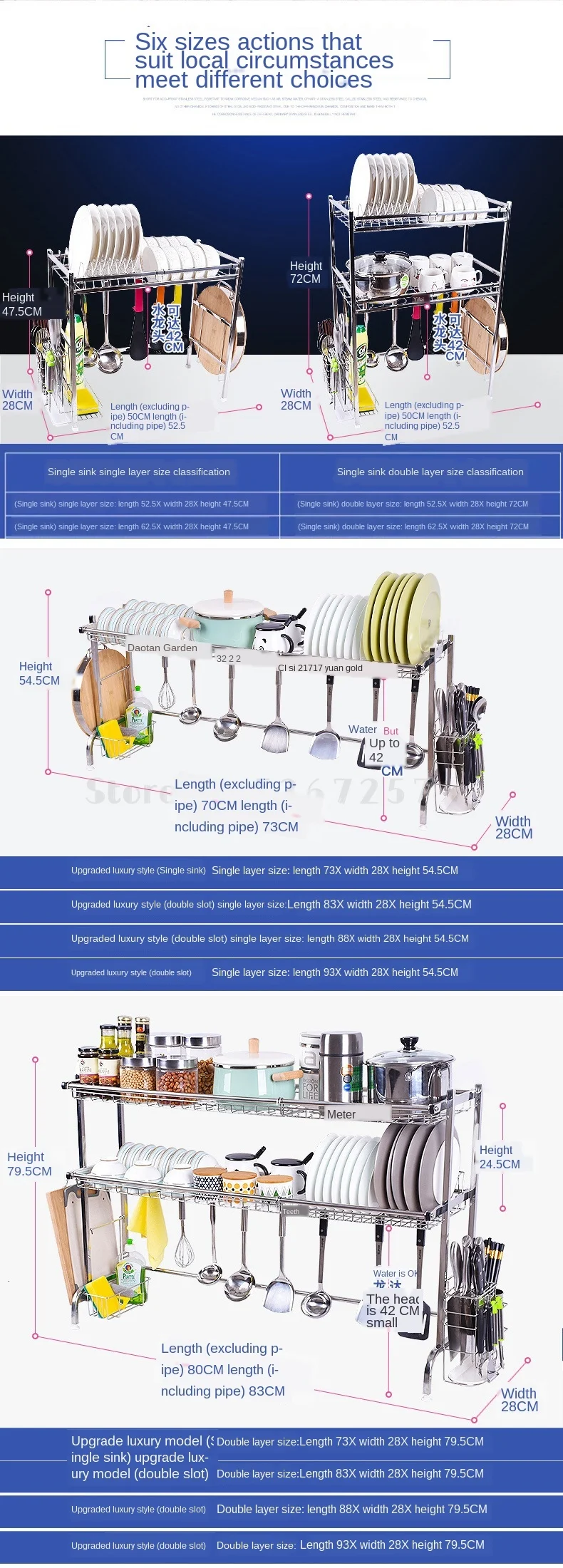 Раковина сливной стеллаж раковина кухонная полка нержавеющая сталь над чашка для дома стойка для посуды.US $87,09 /