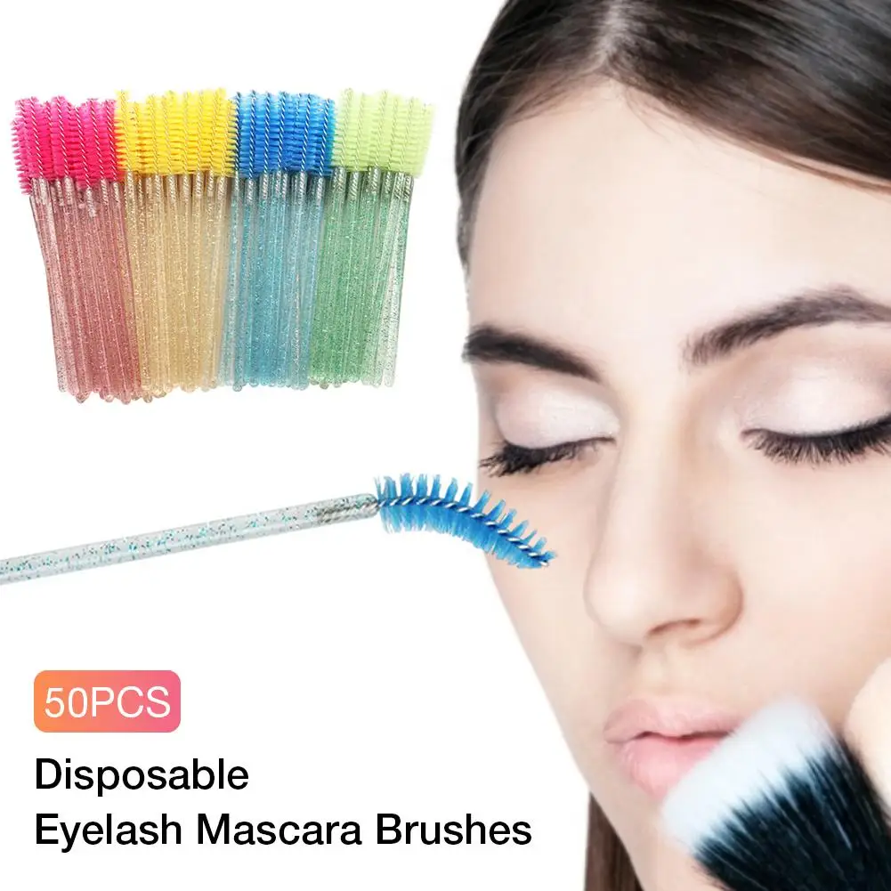 50 шт./лот многоцветная одноразовая кисть для наращивания ресниц, расческа для ресниц, кисти для туши, аппликатор для макияжа, косметический инструмент