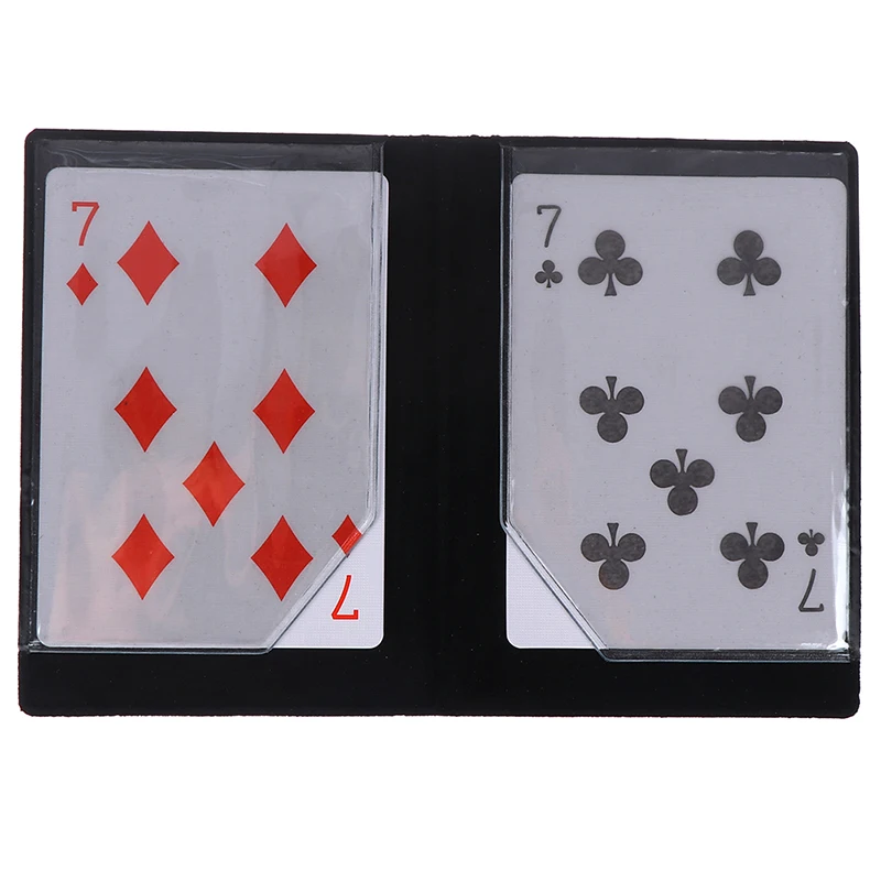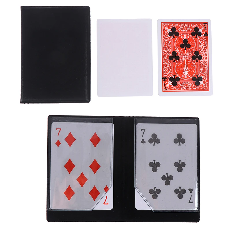 Instruction:Two cards are show in a small black wallet - say the King of Hearts and the Nine of Clubs. Both are removed and placed on a spectators hand. The king is face up and the nine is face down. You claim to have a special power - the ability to make the nine pass through the king. The nine is turned over and the face of the card is completely blank! The King is turned over and the nine of clubs is now printed on the back of the King! This is highly recommended by us a great effect.