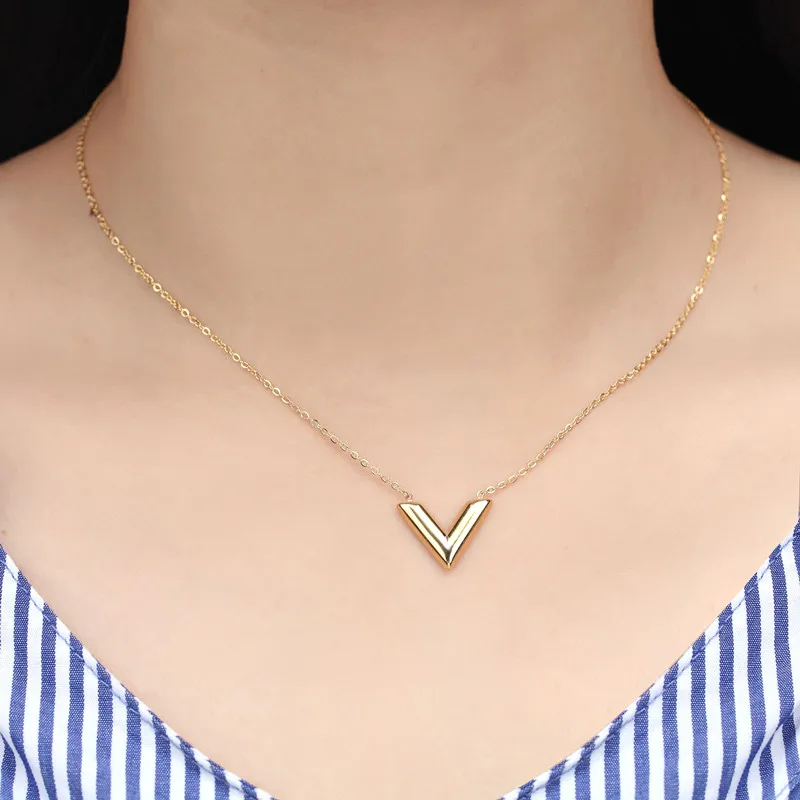 Sifisrri бренд V письмо ожерелье с подвеской простое из нержавеющей стали первоначальное имя Шарм ожерелья для девочек Femme дружба подарок BFF