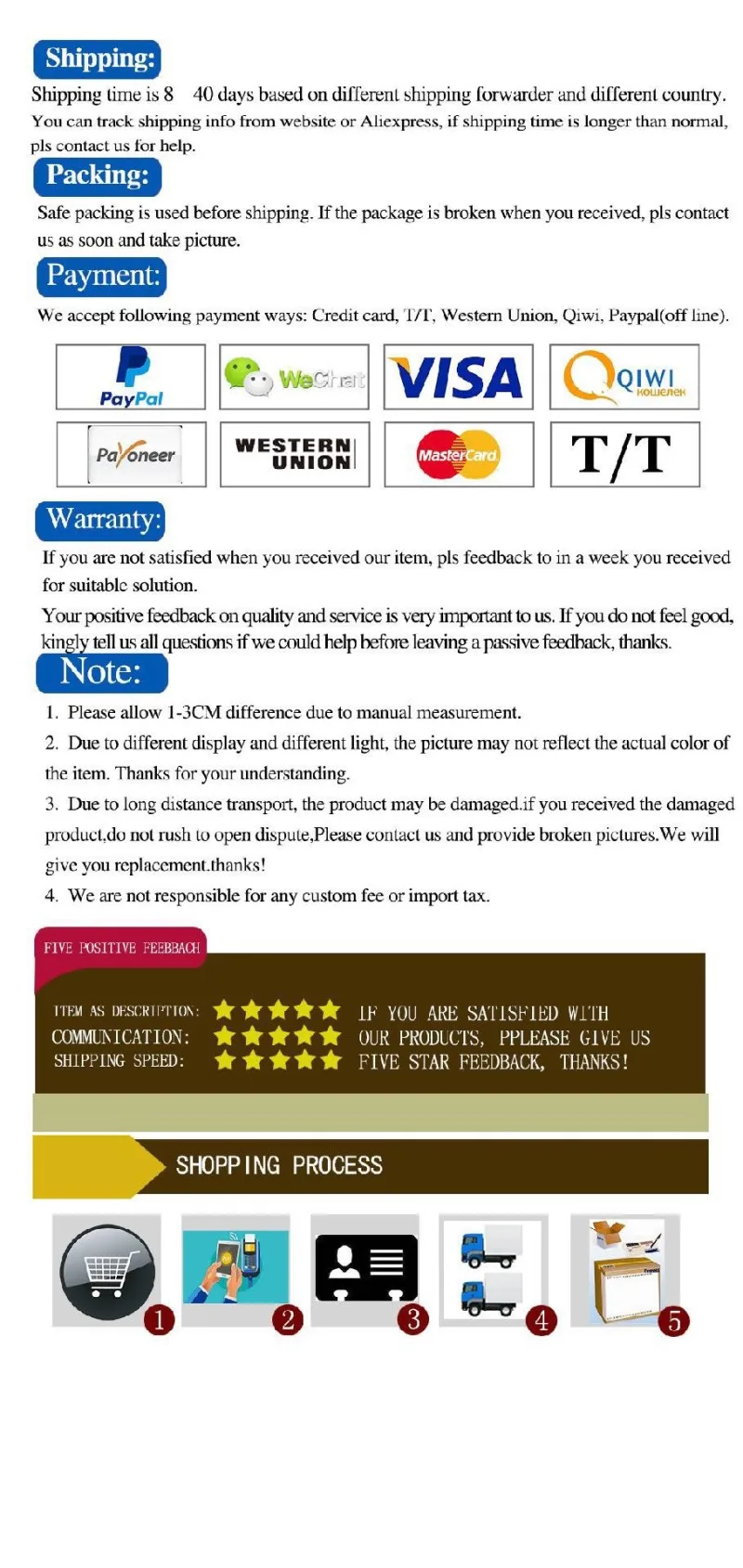 1. Возможны отклонения в 1-3 мм из-за ручного измерения. 2. Из-за различных дисплеев и другого светильник, изображение может не отражать фактический цвет товара.