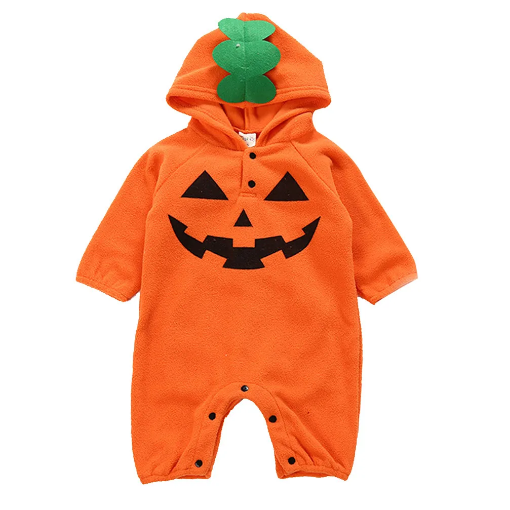 Комбинезон с изображением тыквы на Хэллоуин для новорожденных девочек, комбинезон с капюшоном