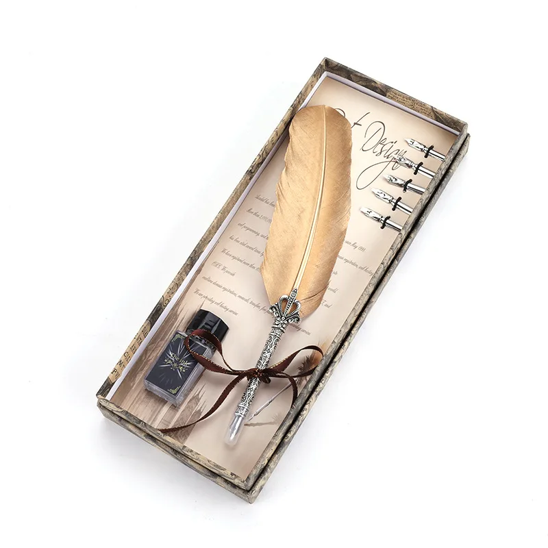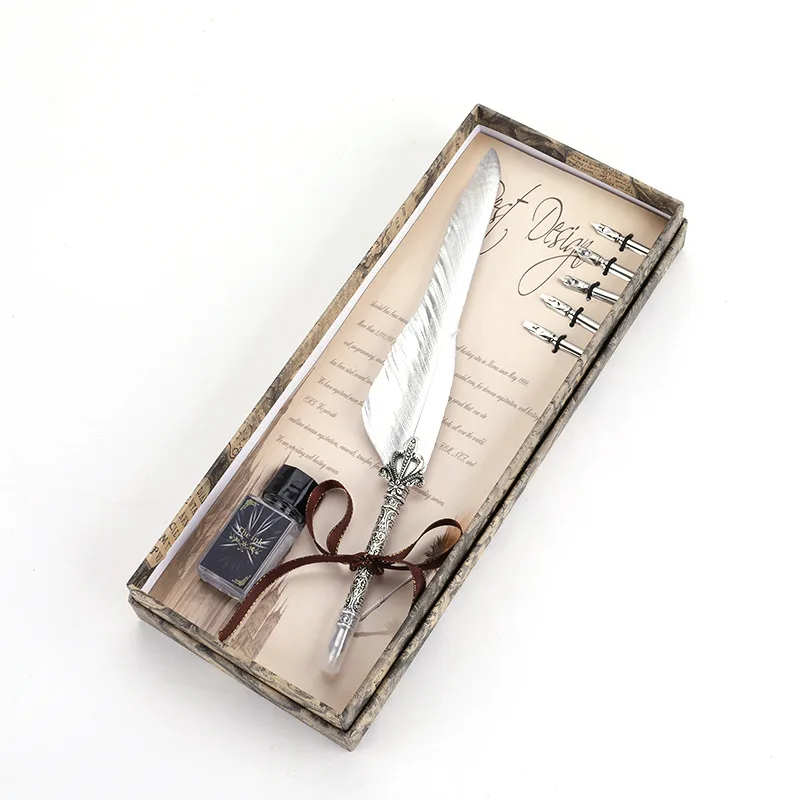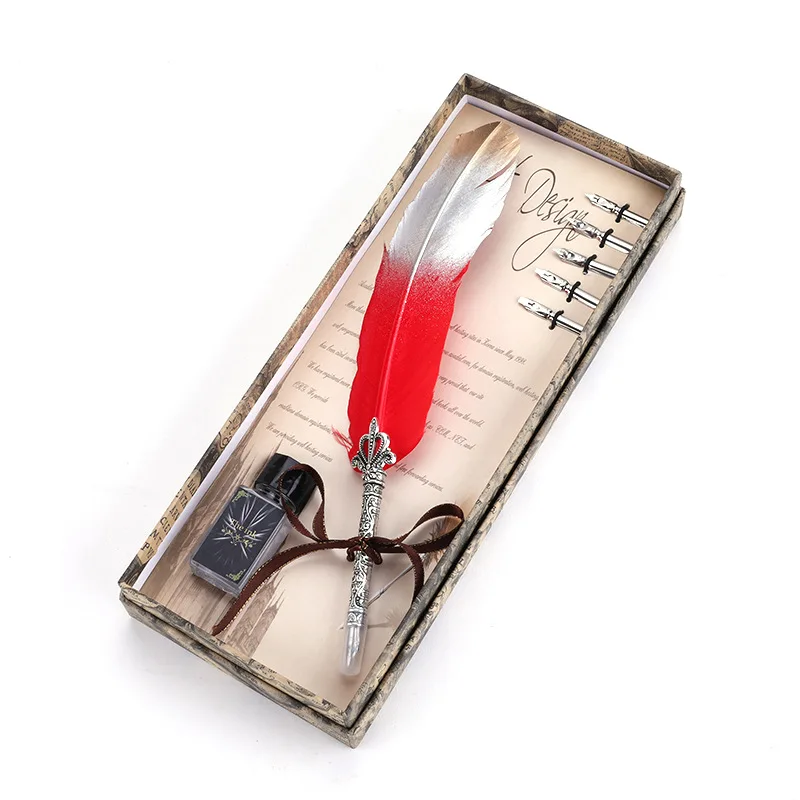 PS210 1Set Calligraphy Feather Dip with 5 Nib Gift Quill Pen Writing Ink Set Gift Box Wedding Fountain Pen Design New