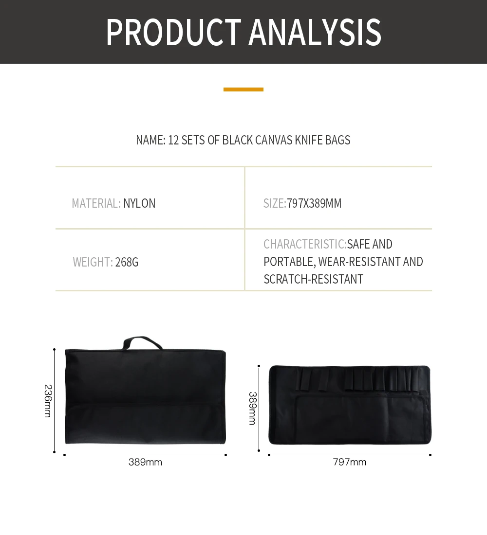 Цвет: черный Материал: ткань «Оксфорд» Карман: 8/12 (Пожалуйста, подтвердите, что ваши ножи меньше 35 см перед размещением заказа, в противном случае эта сумка не будет подходить для вашего инструмента.) Особенности: -Материал ткани Оксфорд, прочный, не легко гнить. -Различные размеры карманов доступны для различных видов ножей. -Вы можете положить ножи в один профессиональный карман шеф-повара. Посылка включает в себя: 1 х сумка для ножей шеф-повара (ножи в комплект не входят) Примечания: 1. Измерения выполнены вручную, допускается погрешность в 1-3 мм, спасибо. 2. Из-за разницы между различными мониторами изображение может не отражать фактический цвет изделия. Мы гарантируем, что стиль такой же, как на картинке. A.8PCS Чехол для ножа