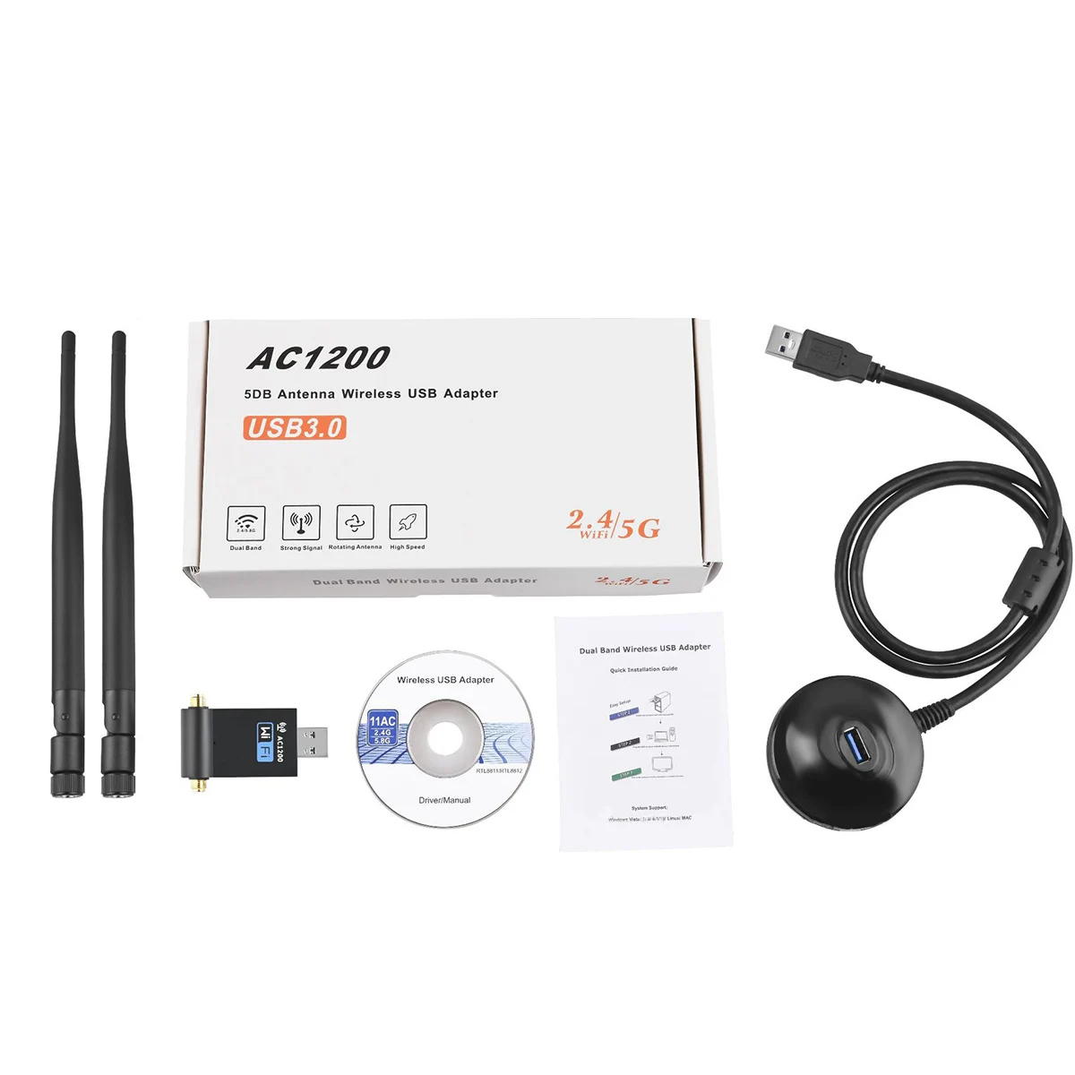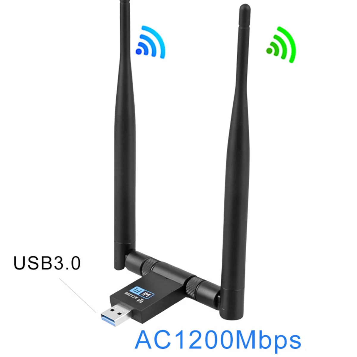 USB 3,0 Wi-Fi Беспроводной адаптер Wi-Fi 5 ГГц/2,4 ГГц 1200 Мбит/с двумя антеннами Вай-Фай адаптер для настольных ПК ноутбук