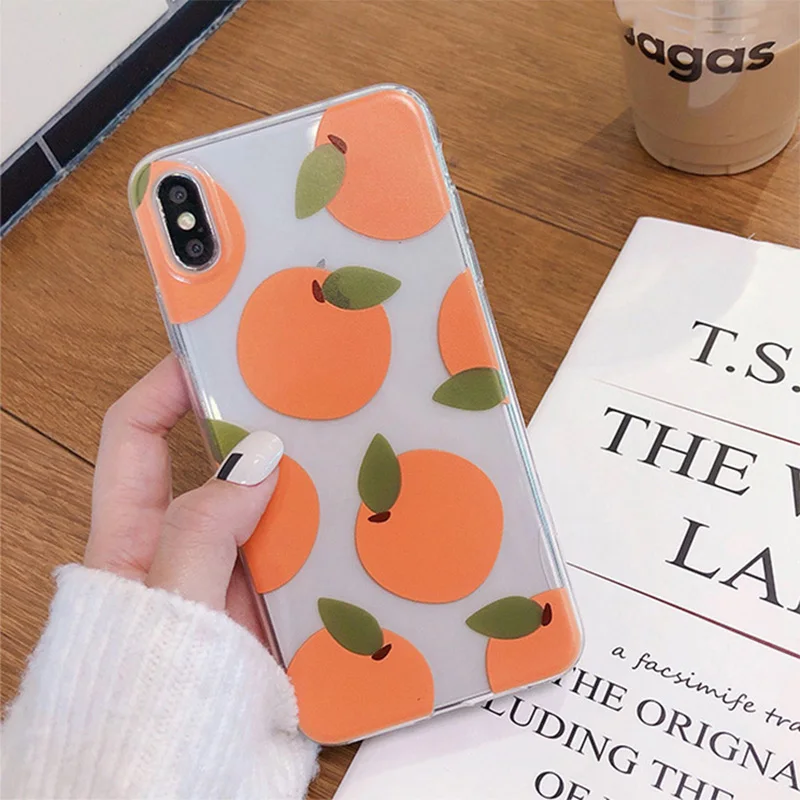 Роскошный прозрачный милый чехол для телефона с оранжевыми фруктами для Apple iPhone X XR XS Max 8 7 6 6S Plus 7plus 8plus, мягкий прозрачный чехол для девочки