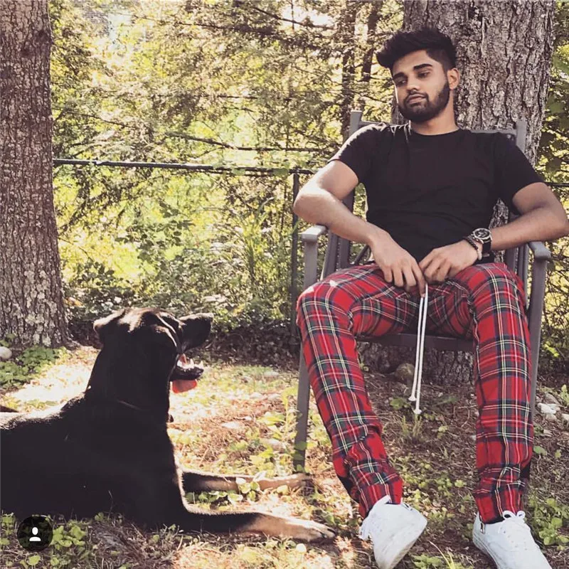 Mens Casual Plaid Long Pants Tracksuit Fitness Workout Joggers Trousers