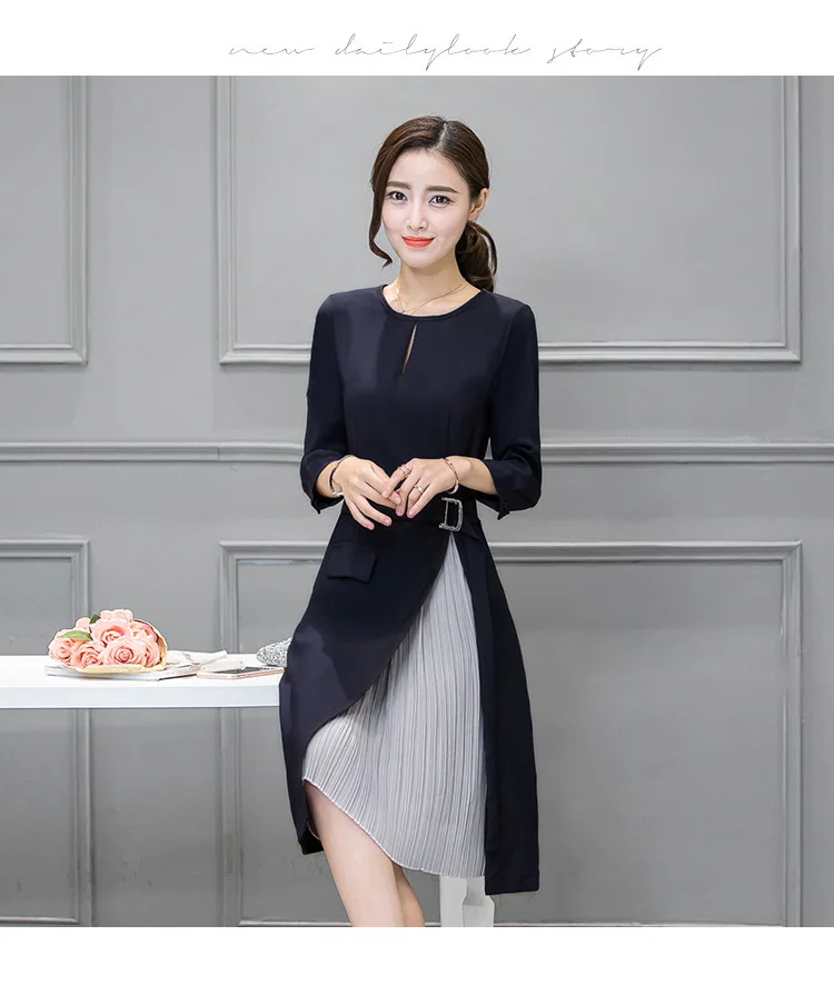 Платья с длинным рукавом в стиле пэчворк, приталенное платье, Осень-зима-весна, Повседневное платье трапециевидной формы, имитация двух частей, женское офисное платье Z958 <