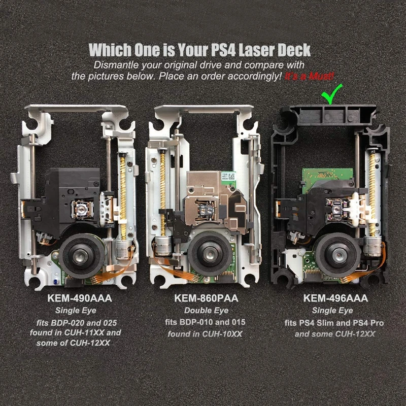KEM-496AAA-это колода с KES-496 головкой с одним глазом для BDP-010 и BDP-015 dvd-накопителя blue ray. Это идеальная запасная часть для ремонта для PlayStation PS4 Slim CUH-20XX, PS4 Pro CUH-70XX edition и некоторых CUH-12XX консоли