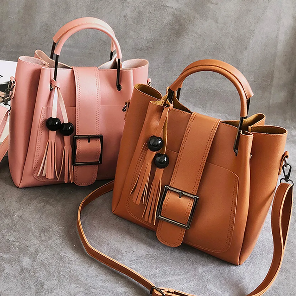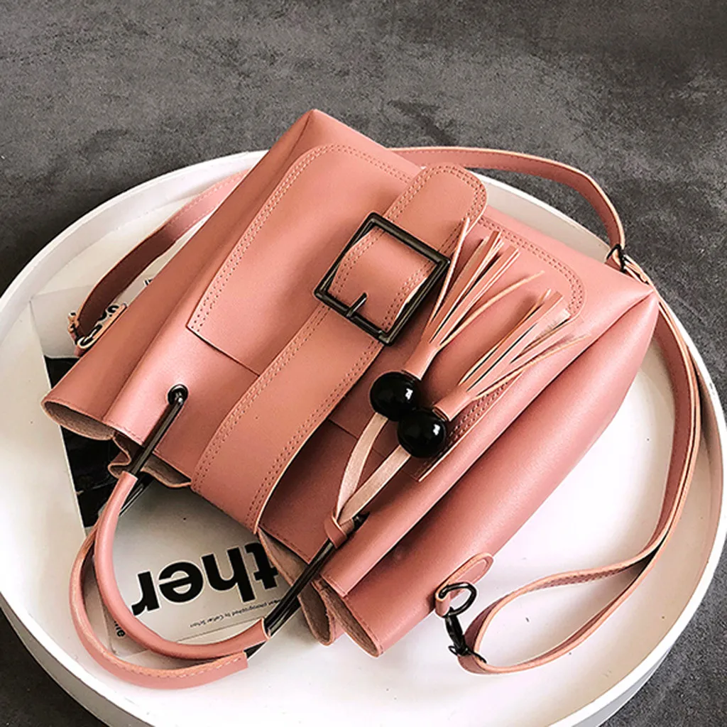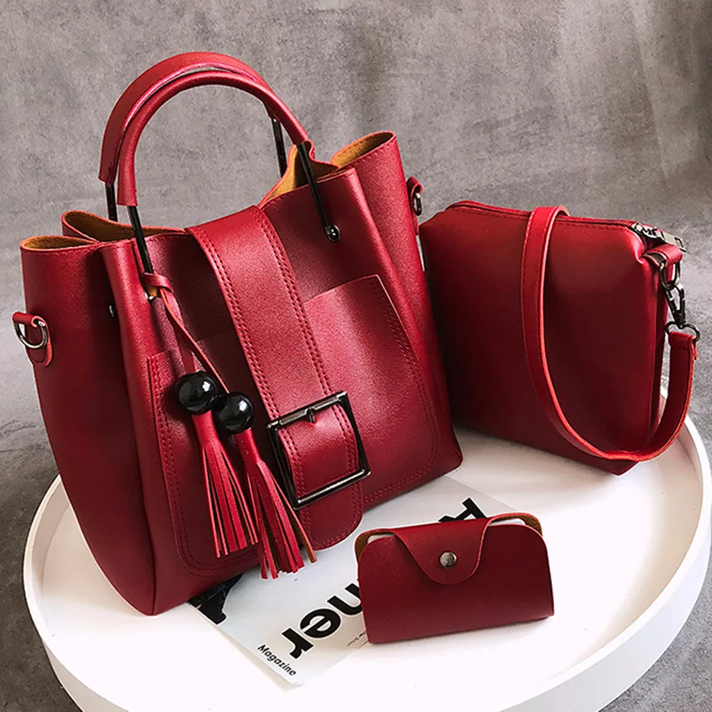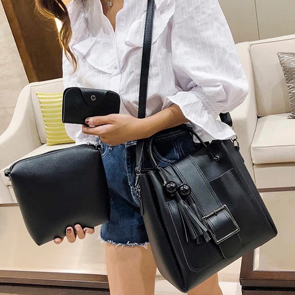 3 шт., женская модная однотонная сумка-мессенджер с бахромой для отдыха + Сумочка + кошелек