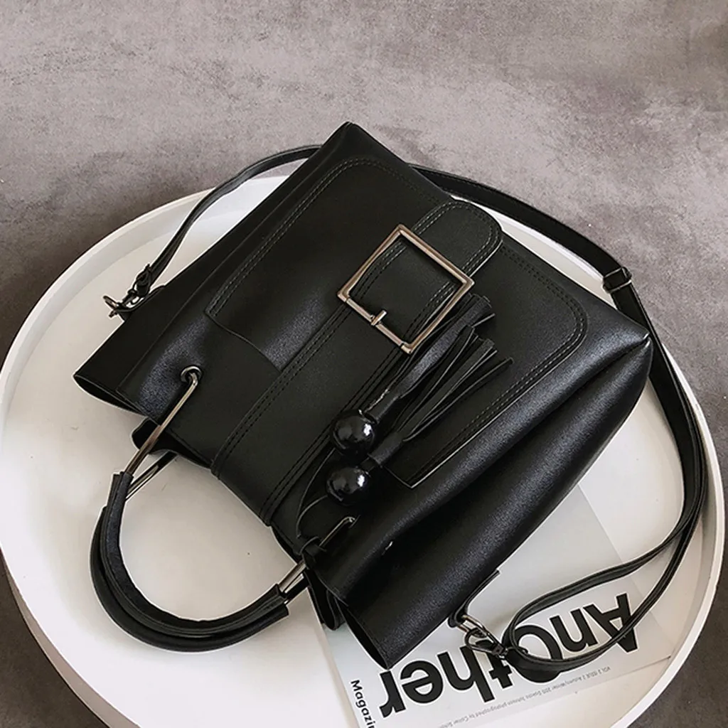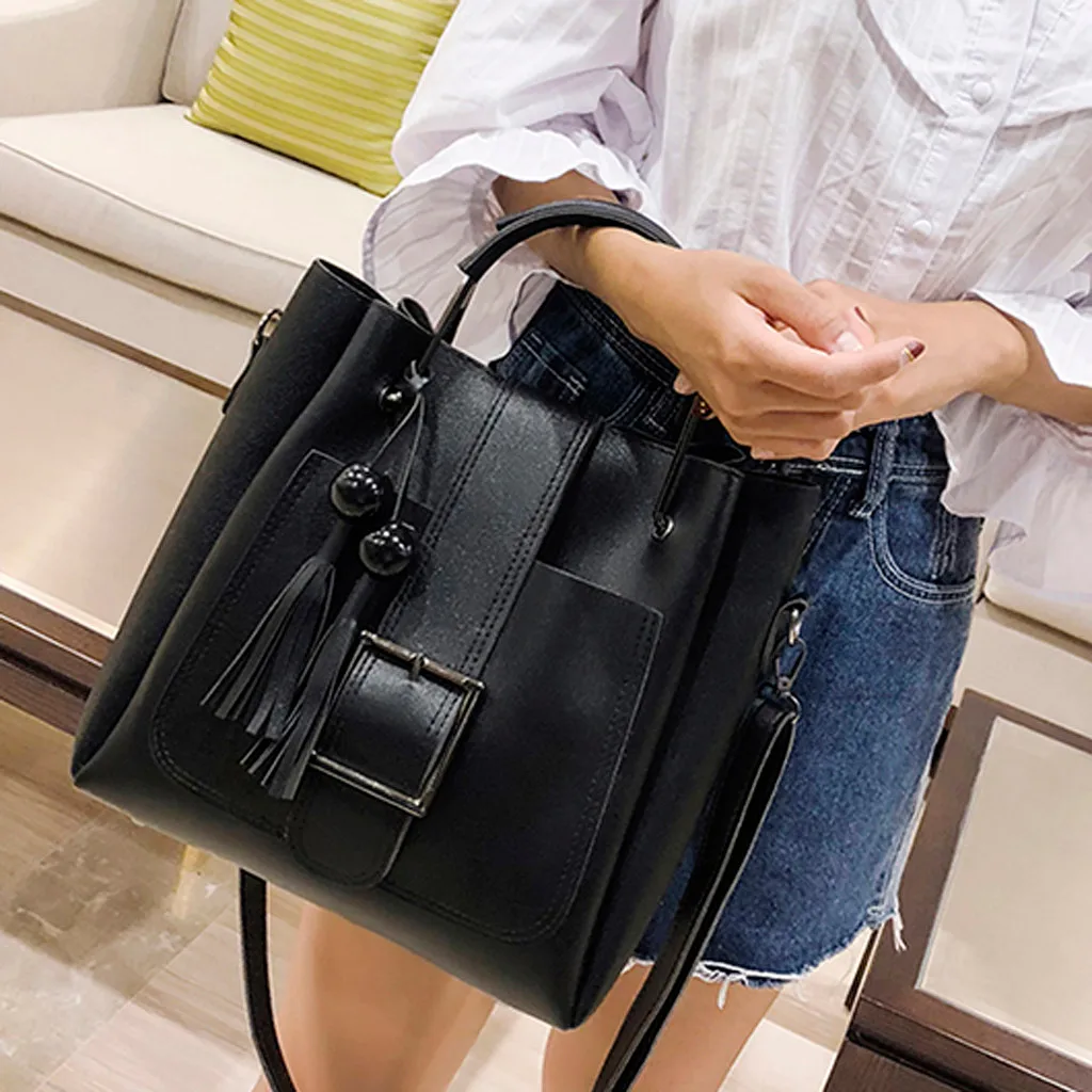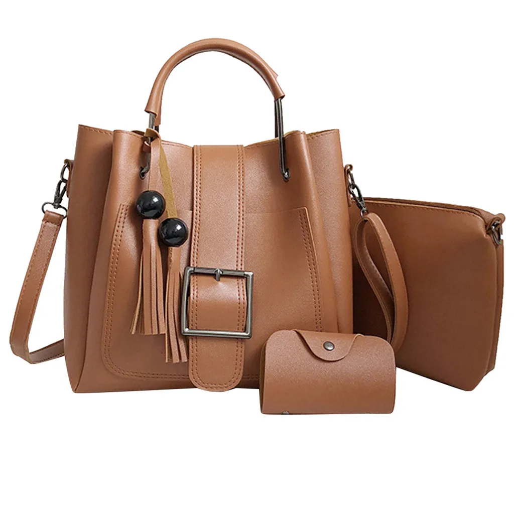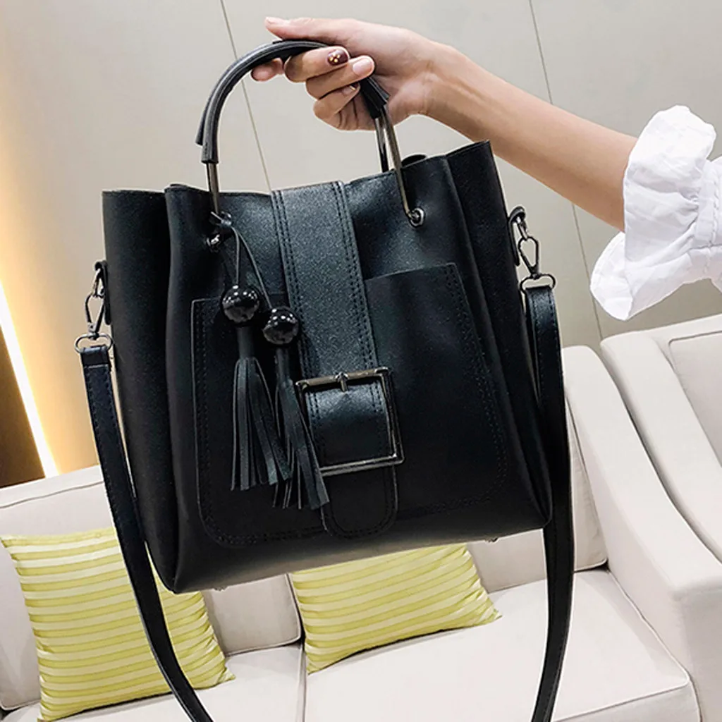 3 шт., женская модная однотонная сумка-мессенджер с бахромой для отдыха + Сумочка + кошелек