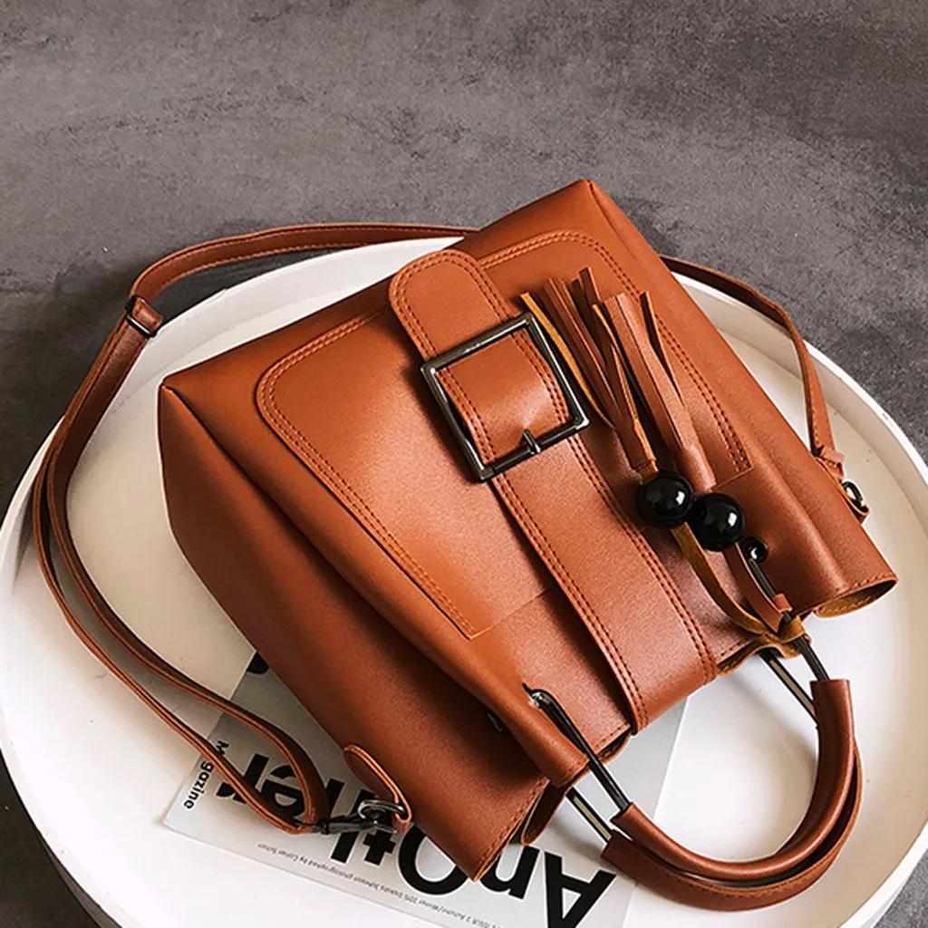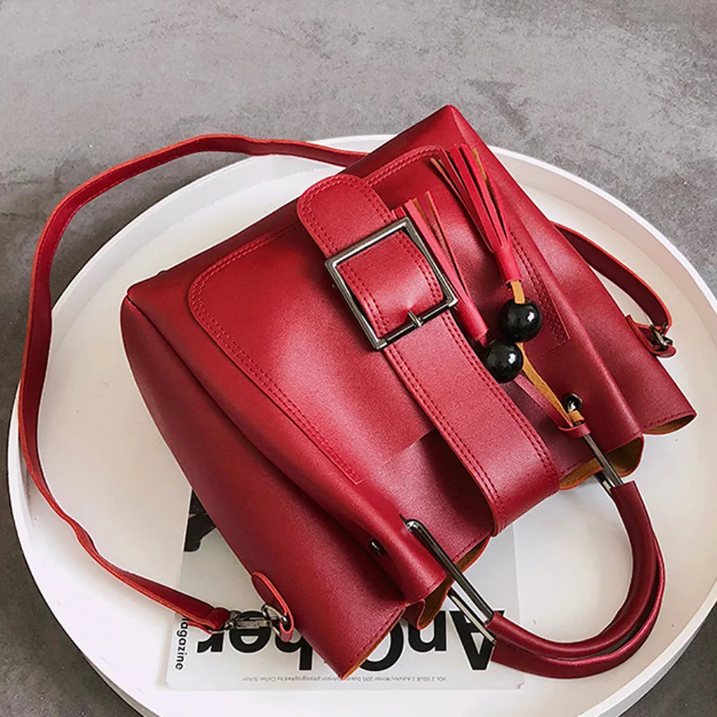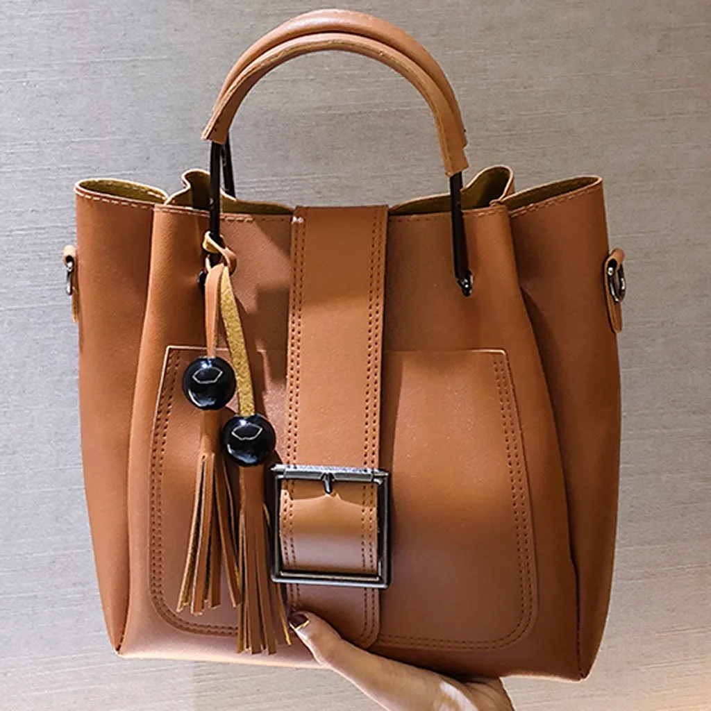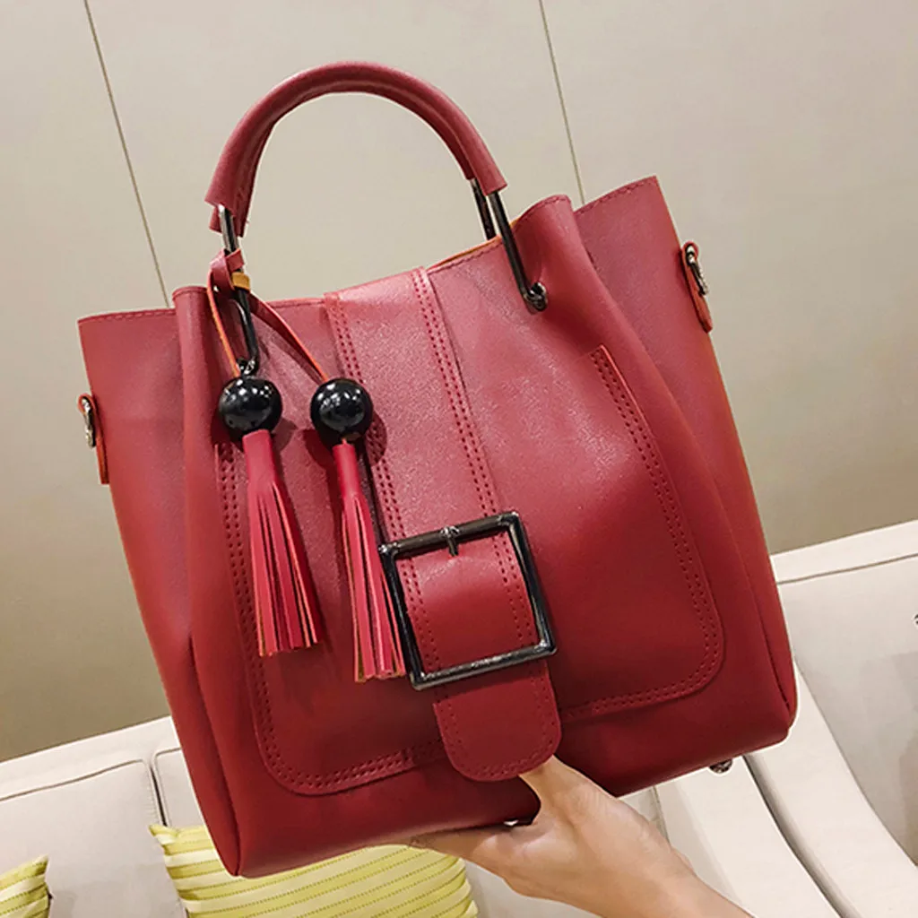 3 шт., женская модная однотонная сумка-мессенджер с бахромой для отдыха + Сумочка + кошелек
