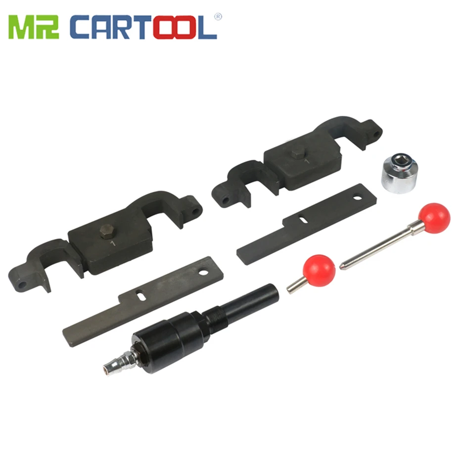 Набор из двух распределительных валов (C) 9595/1: два зубчатых штифта для блокировки двигателя на TDC набор из двух приспособлений, необходимых для установки распределительного вала на Porsche Cayennes с использованием двигателей M97/01 V8. Этот инструмент необходим для установки времени TDC в любое время, когда время камеры нарушается для обслуживания камер, головки цилиндра, цепи синхронизации или фазеров с переменным клапаном-таймером. 9683/1: Жесткий натяжитель цепи Пневматически управляемый натяжитель цепи необходим для натяжения основной цепи синхронизации на двигателях Porsche Cayenne DFI V8 (турбо и нормально-аспиратор) при установке клапана, кулачка или кулачковый фазер. Требует регулируемого источника воздуха между 5,0 и 5,5 бар 9714: торцевой гаечный ключ вставка очень максимального медленного роста, поверните к двигателю этот набор инструментов позволяет правильно установить время двигателя при замене ремня ГРМ двигателя 4.5L, 4.8L V8