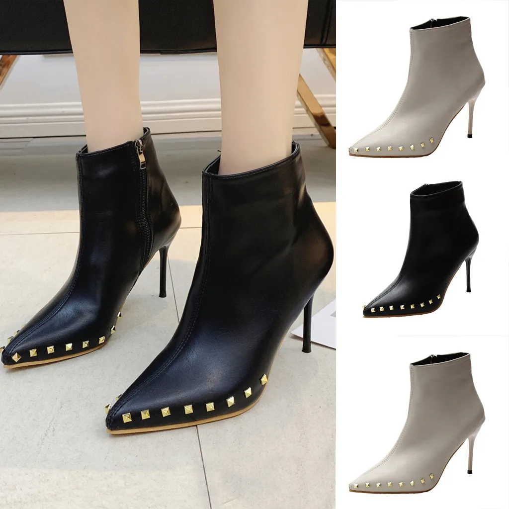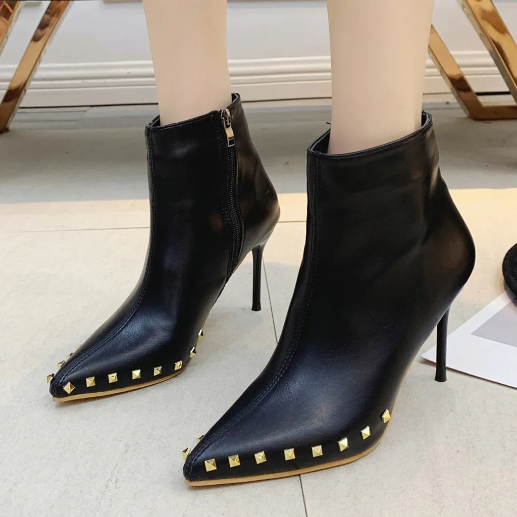 Женские пикантные ботинки на высоком каблуке-шпильке с острым носком; женские короткие ботильоны с боковой молнией