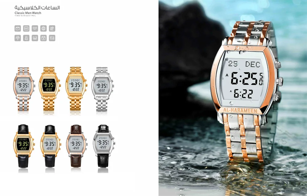Мусульманские часы с АЗАН ВРЕМЯ молитва будильник направление Кибла и календарь хиджри![]()