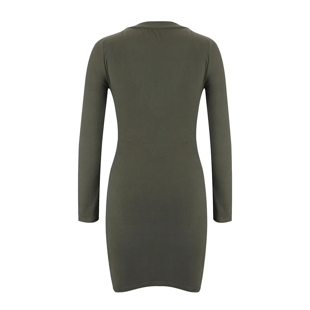 Модное женское сексуальное облегающее мини-платье с v-образным вырезом и длинным рукавом на осень и зимуИнформация о продукте: