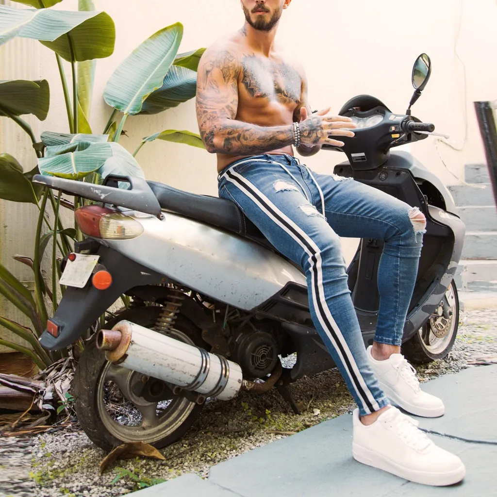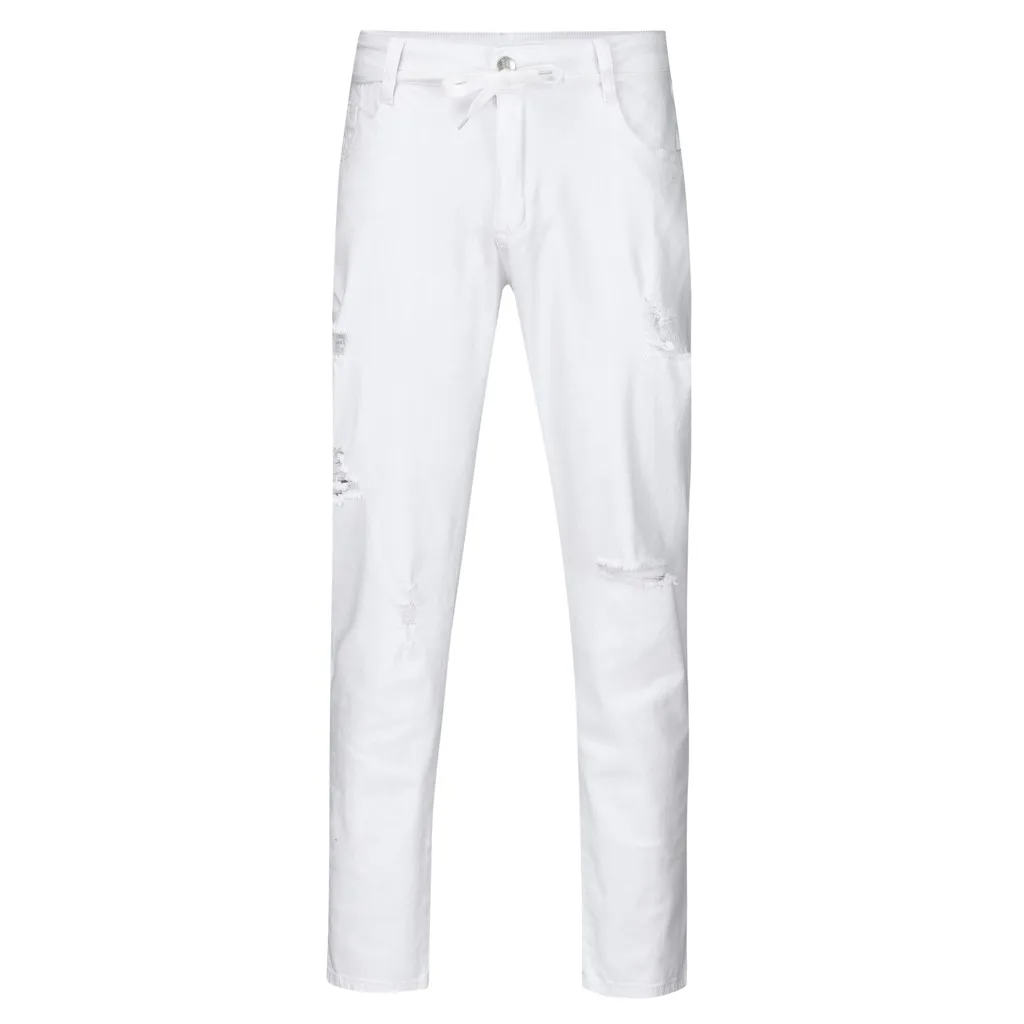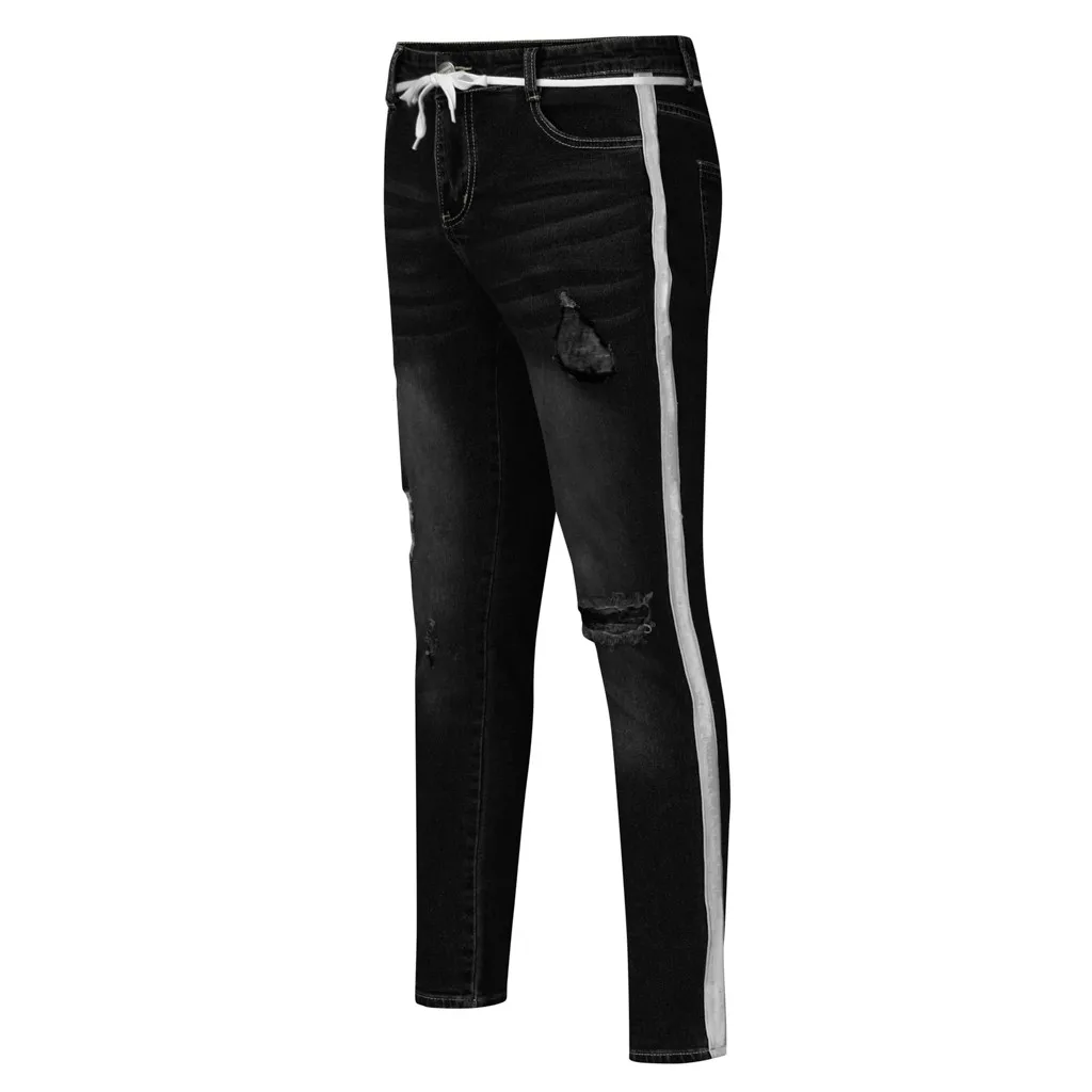 Мужские модные повседневные джинсовые Прямые рваные брюки, потертые джинсы, длинные штаны