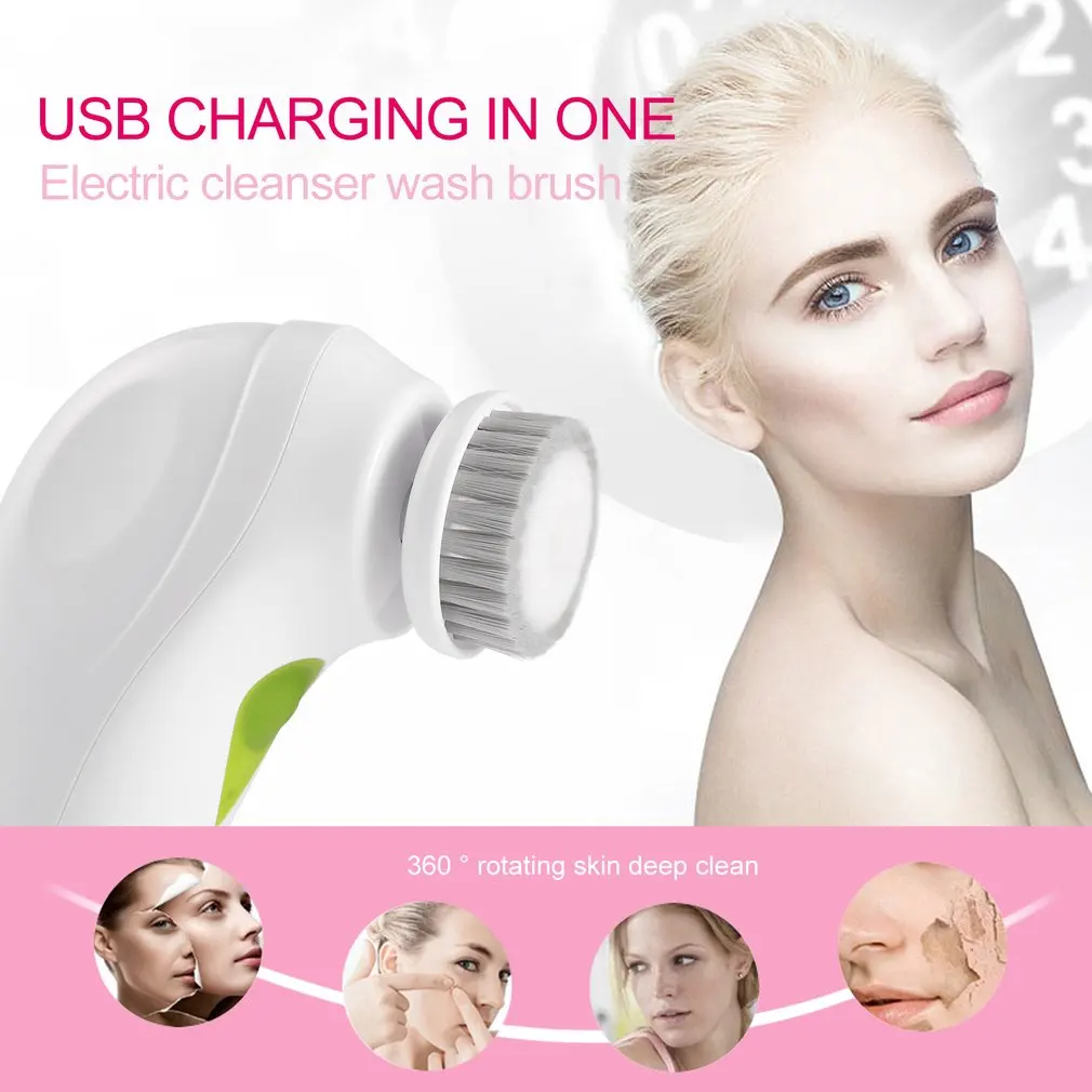 Электрическая силиконовая щетка для чистки лица, мини USB перезаряжаемая щетка для лица, 3 сменные головки, очиститель для лица, инструмент для красоты