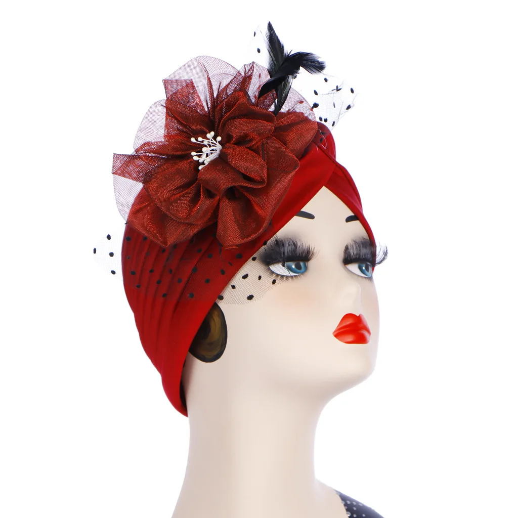 Женская индийская сетчатая Цветочная шляпа мусульманская гофрированная раковая шапка Хемо шапка