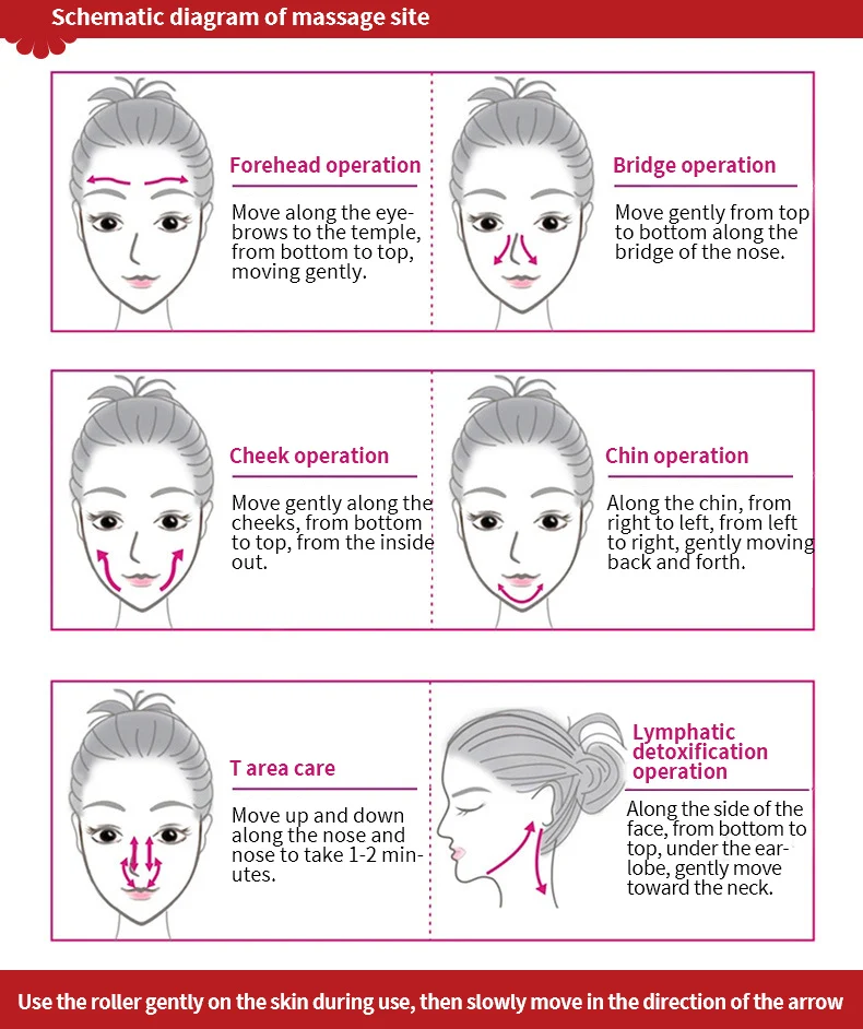 Как и где использовать косметический ролик можно использовать на лбу, щеках, ключицах, шее, верхних руках, руках, плечах и икр. Этот массажер для тела и лица с использованием мягких подвижных движений по всей коже поможет увеличить кровообращение и активировать омоложение клеток. Используйте ролик для лица 3-5 раз в день в течение 2-3 минут, и он обеспечит большую защиту от старения и здоровый вид кожи. Пусть волшебная палочка красоты зарядит вас энергией, усилит и оживит вашу кожу, чтобы она выглядела лучше.