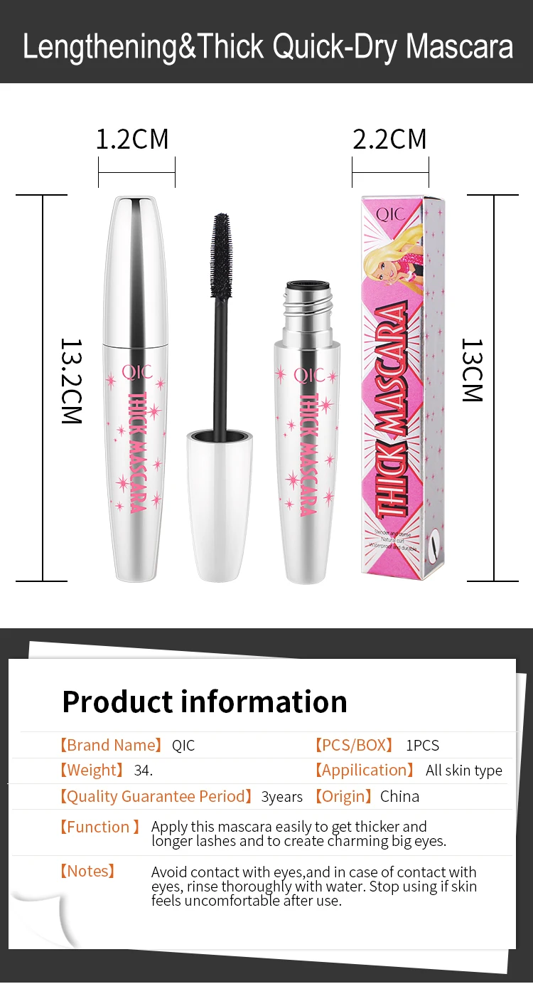 QIC 4D Тушь для ресниц удлиняющая и толстая быстросохнущая тушь для ресниц не Цветущая кудрявая тушь для начинающих водостойкая густая Волшебная тушь для макияжа глаз