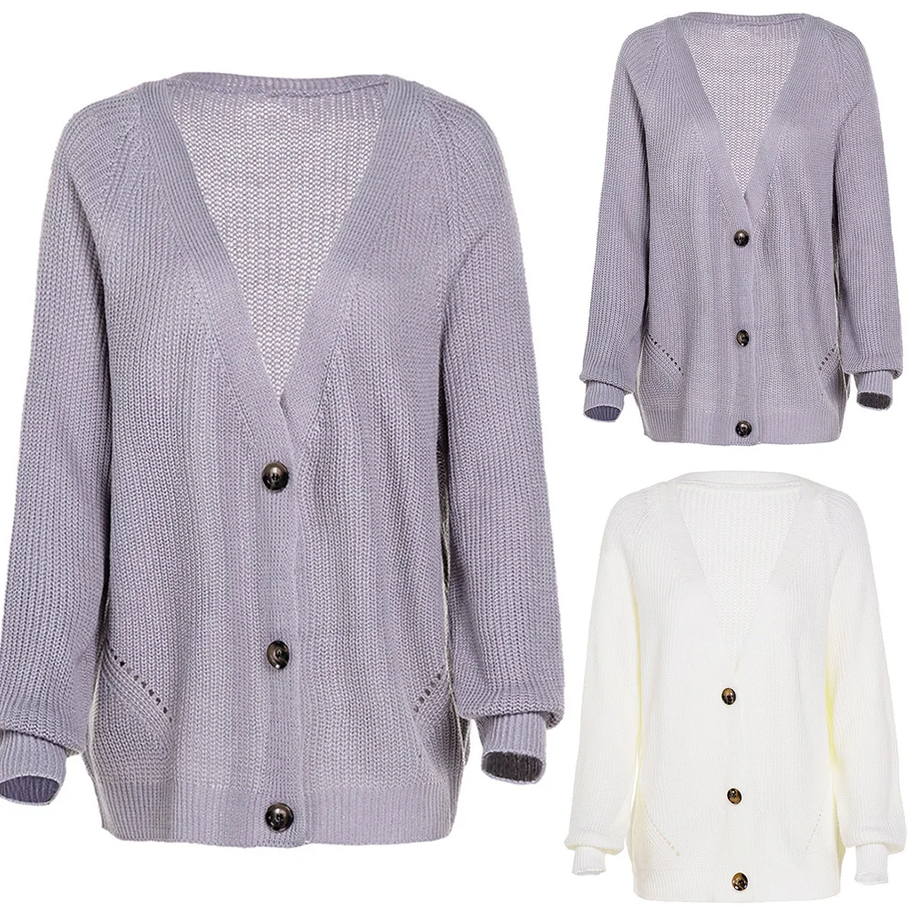 Шикарный женский открытый Спереди Кардиган с пуговицами длинный рукав однотонный вязаный свитер