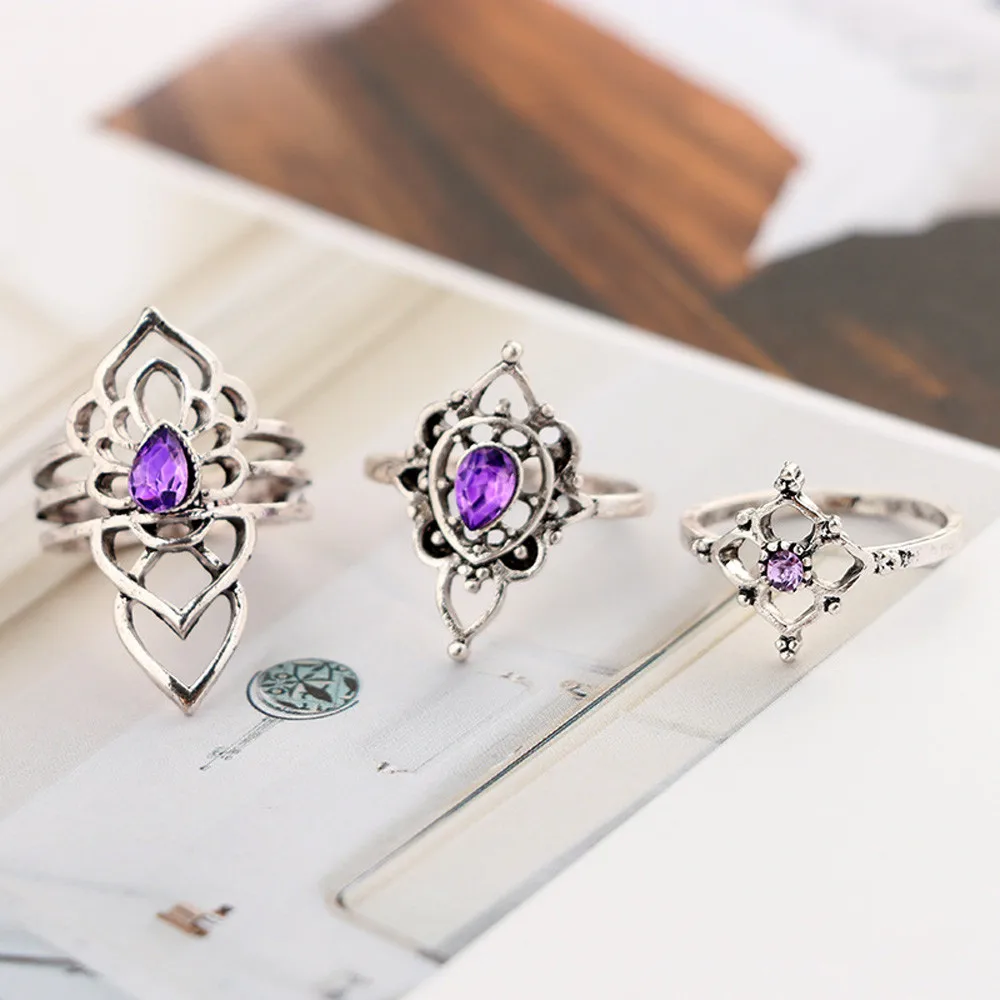 Горячая Распродажа 7 шт набор колец с натуральным камнем огненный опал кольцо с бриллиантом обручальное кольцо для женщин модные вечерние #10