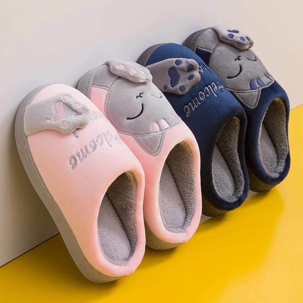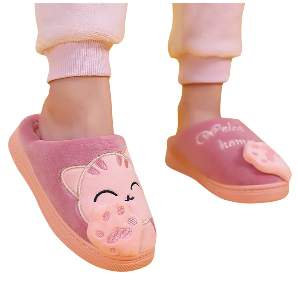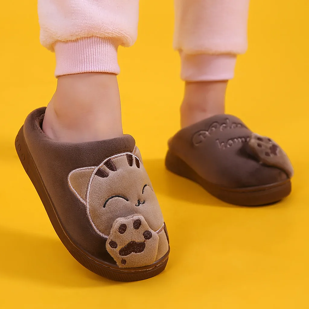 Детские зимние тапочки для маленьких мальчиков и девочек; Нескользящие тапочки с рисунком кота Для дома В помещении;