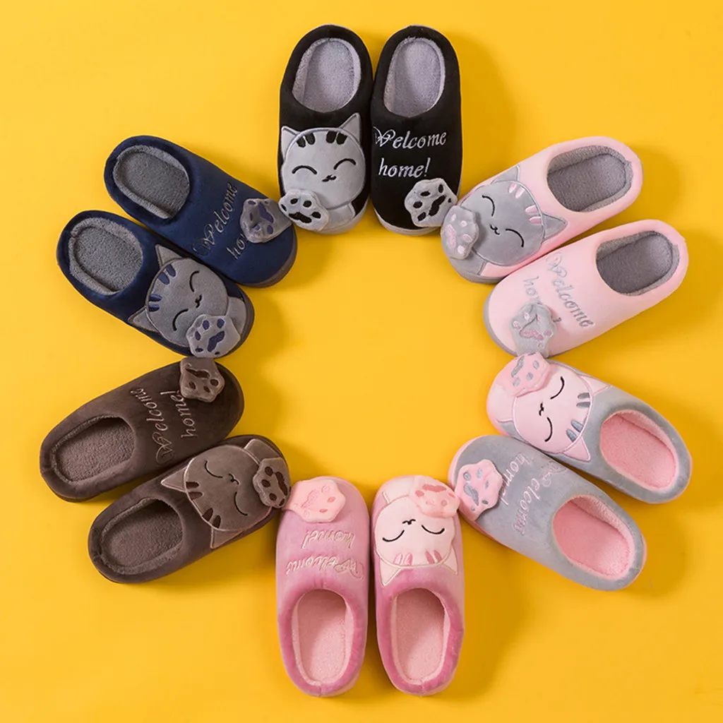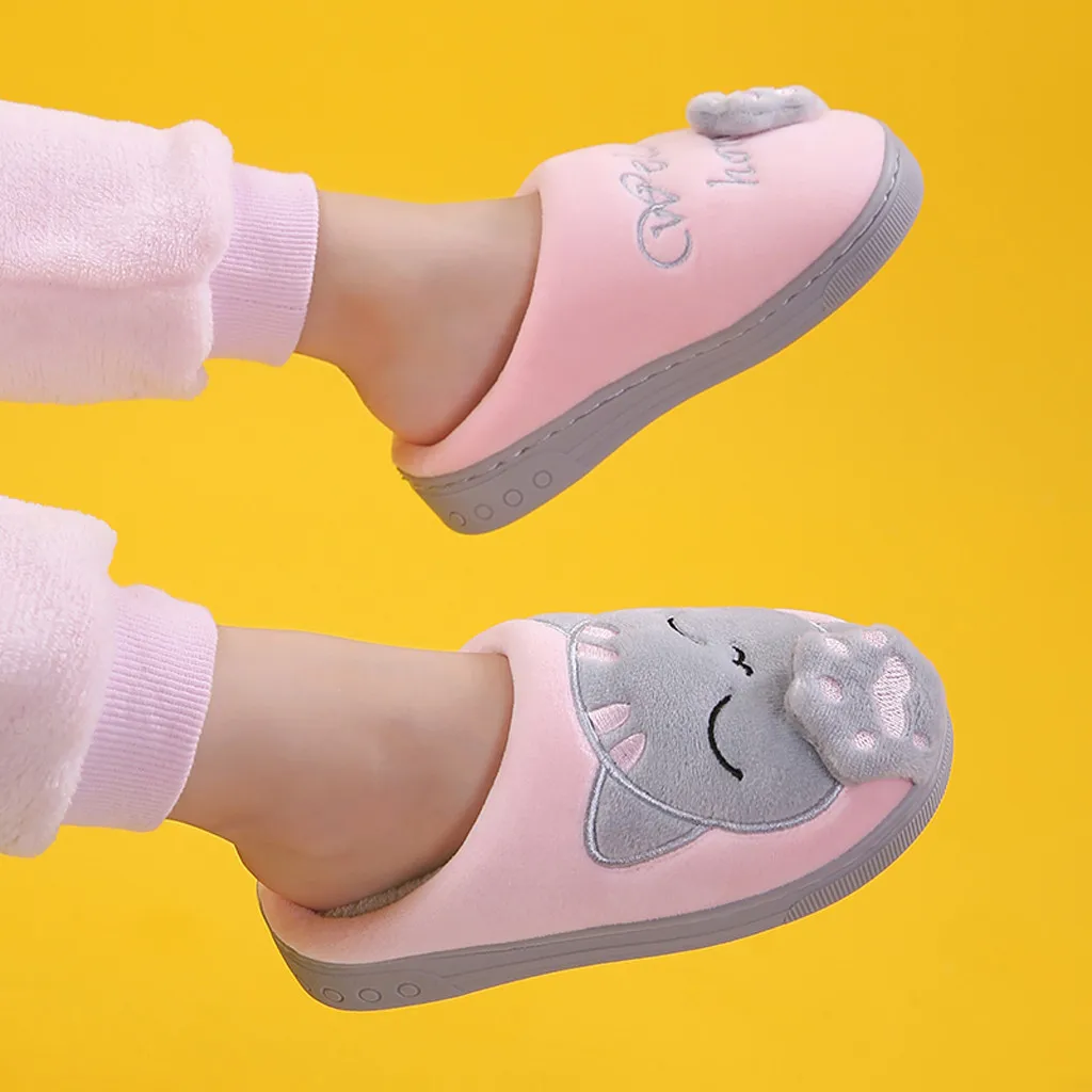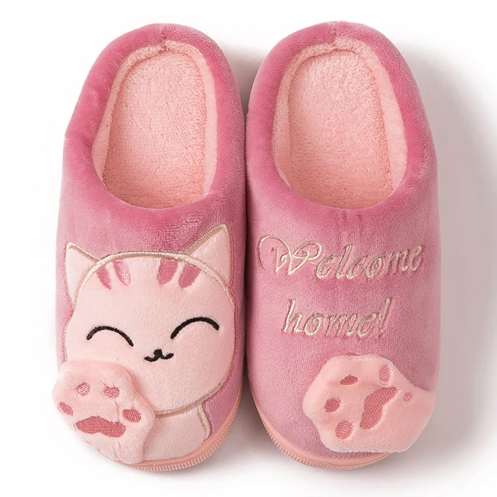 Детские зимние тапочки для маленьких мальчиков и девочек; Нескользящие тапочки с рисунком кота Для дома В помещении;
