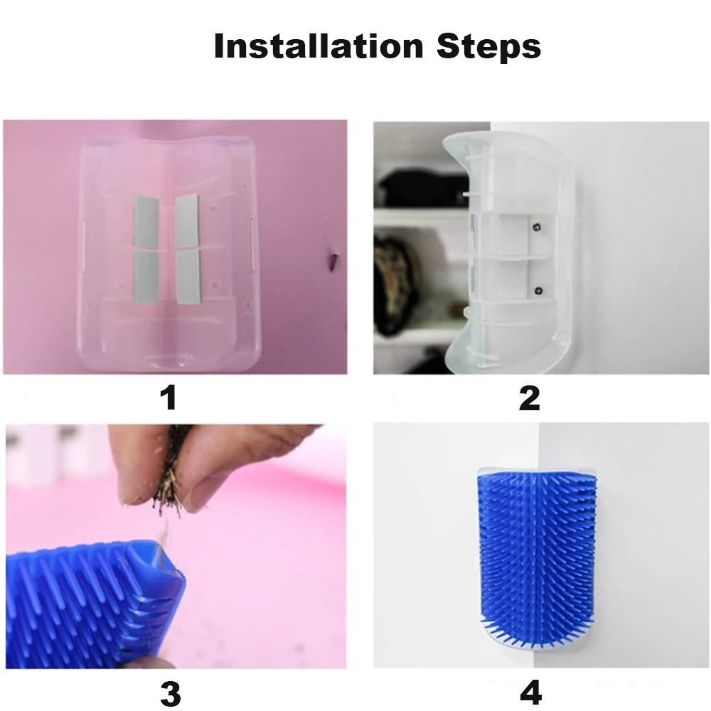 Информация о размере: Тип: кошки Цвет: синий/серый Размер: 9*13 см Материал: пластик + мята Посылка: 1 шт. само грумер 1 сумка catnip 4 шт. Self-самонарезающие шурупы + 4 шт. 3 см двусторонний клей