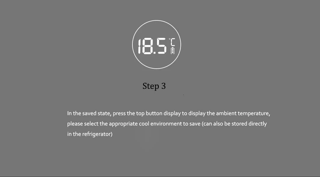 В сохраненном состоянии нажмите верхнюю кнопку, чтобы отобразить температуру окружающей среды, пожалуйста, выберите подходящую прохладную среду для сохранения (также можно хранить прямо в холодильнике)