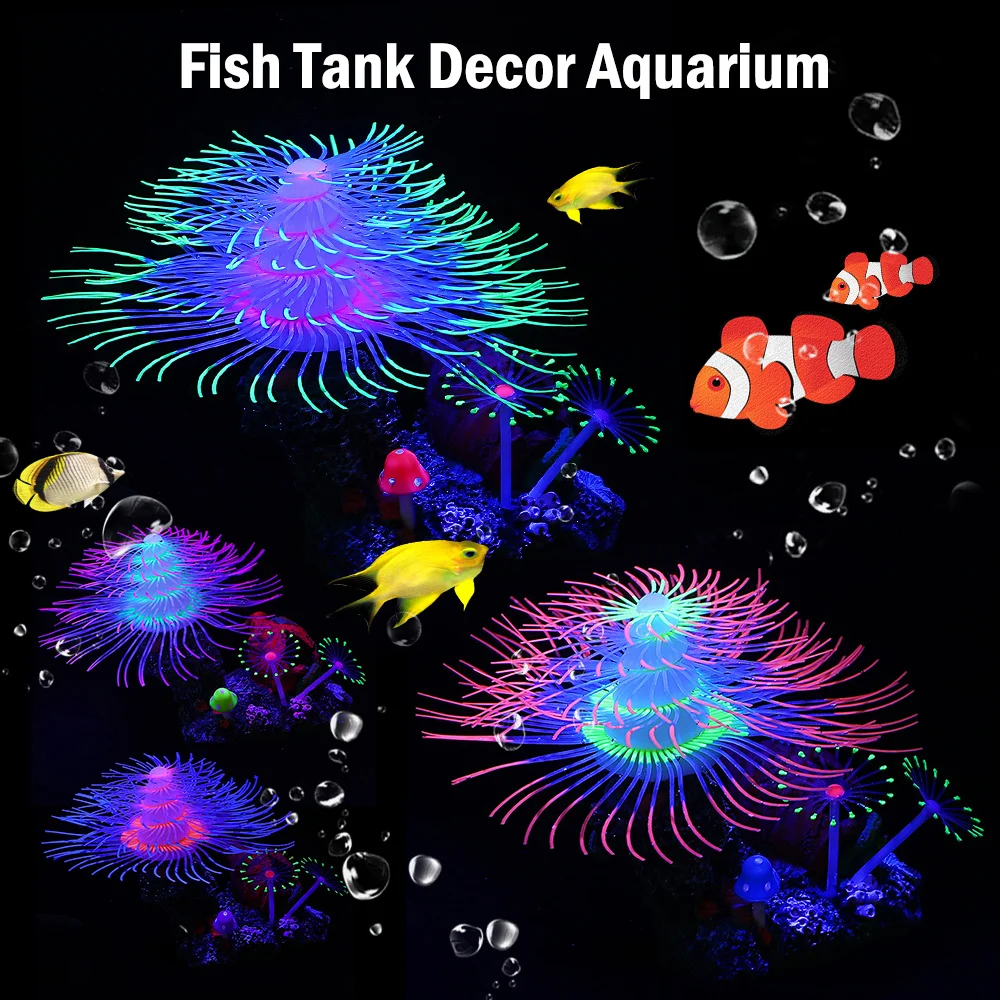 Аквариумный Аквариум Искусственный силикон светящаяся Рождественская елка коралловый растительный пейзаж украшение аксессуар