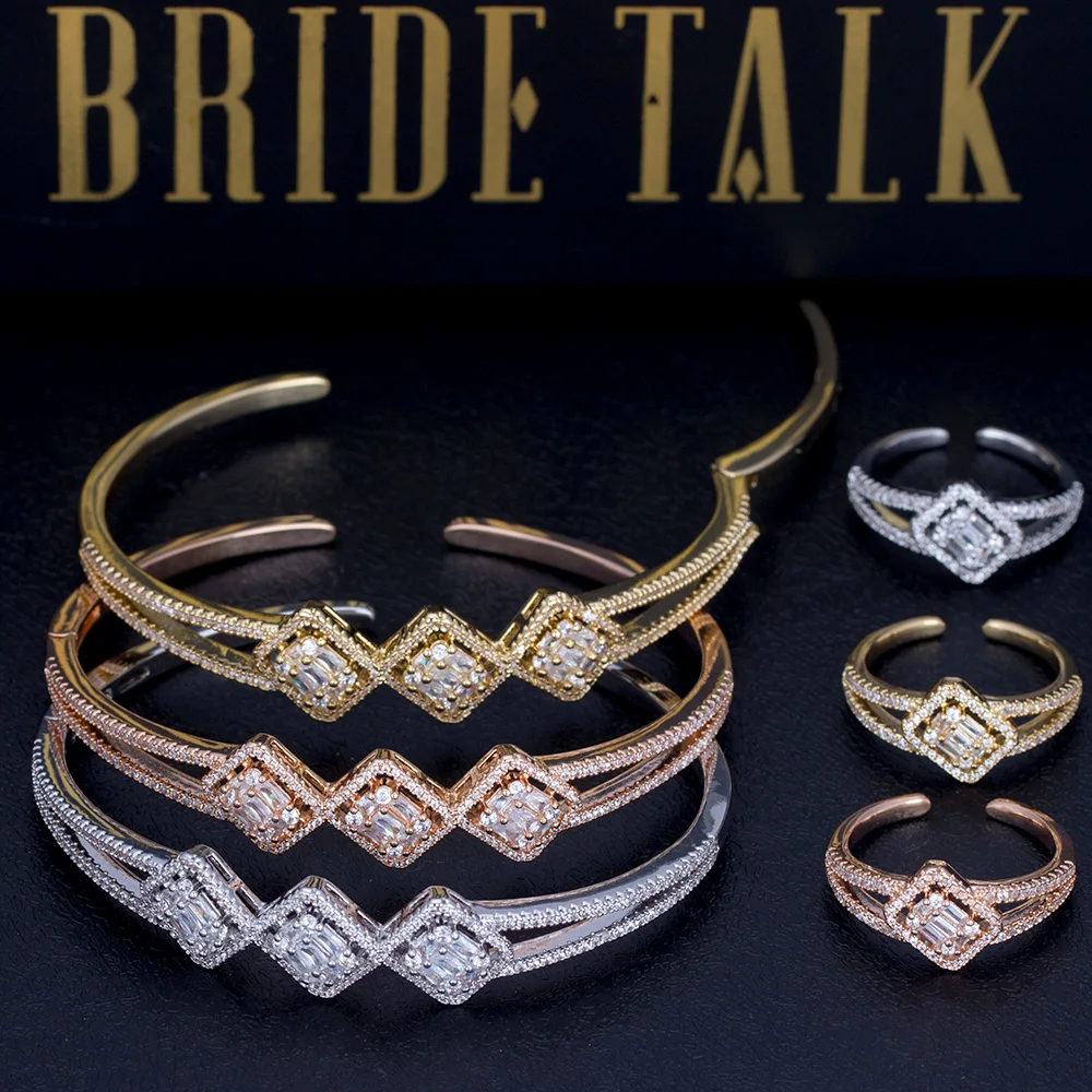 Невесты TALK покрыть Нигерией розовое золото тон Медь африканские браслеты роскошный кубический циркон регулируемый браслет кольцо наборы Дубай ювелирные изделия