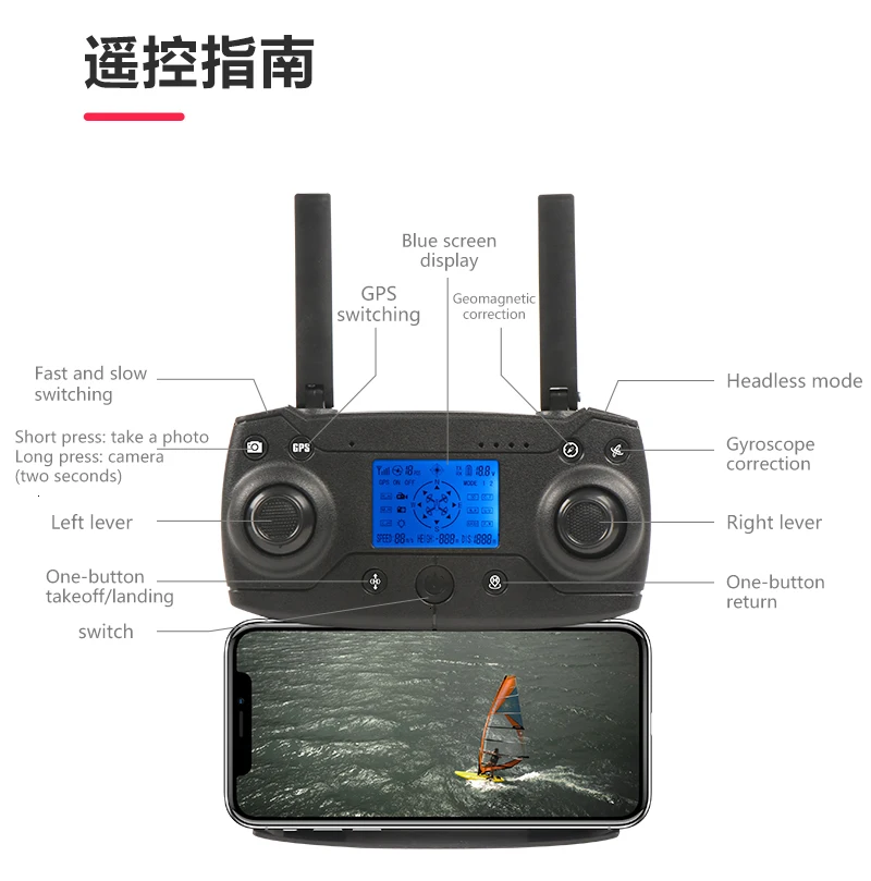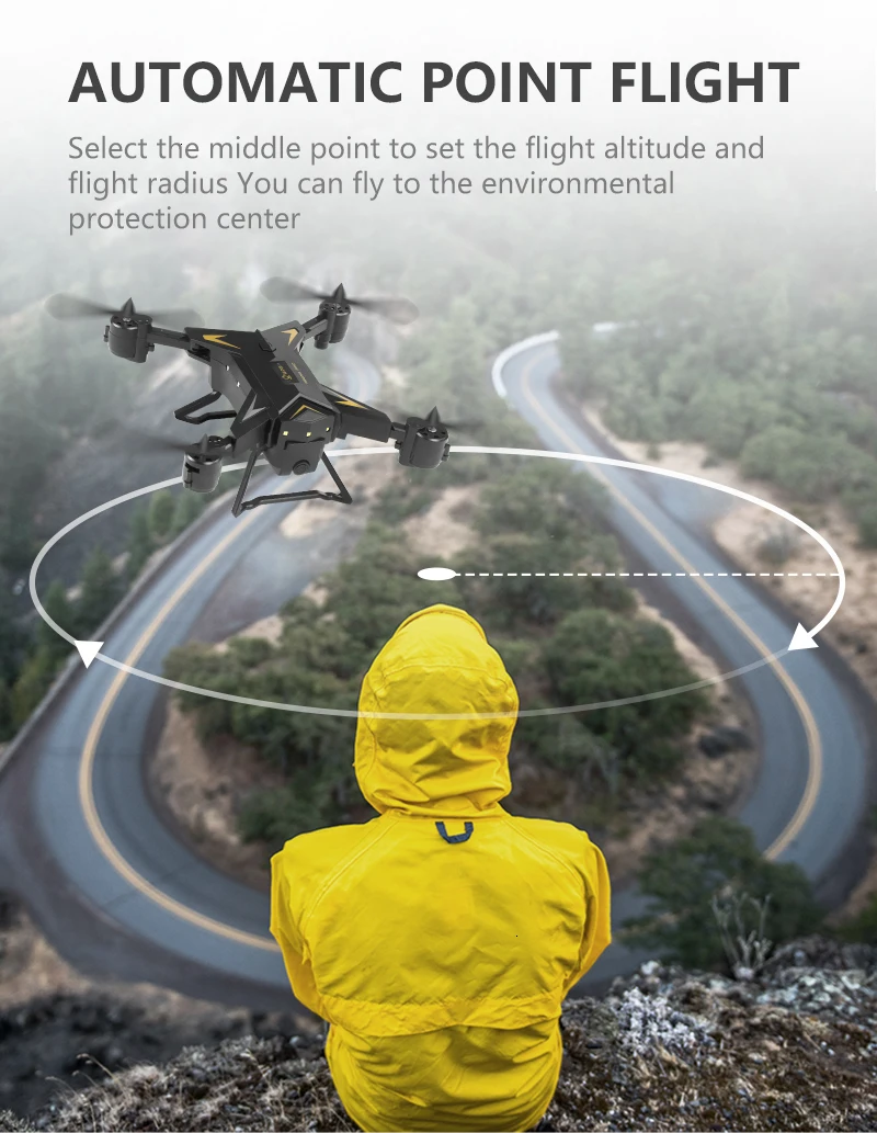Функция: Складной Корпус, запуск одной кнопкой, посадка одной кнопкой, удержание высоты, Wi-Fi подключение, Управление приложениями, фото жестов, запись жестов, мониторинг изображения, траектория полета, контроль скорости, передача в режиме реального времени, передача изображения MV и видео, позиционирование GPS, возврат одной кнопкой, электрическая камера, объемное изображение с фиксированной точкой