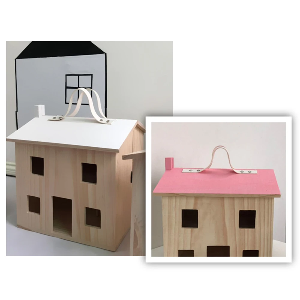 -Этот портативный деревянный кукольный домик был разработан с рабочей передней дверью и металлической застежкой, которые легко открываются и закрываются.