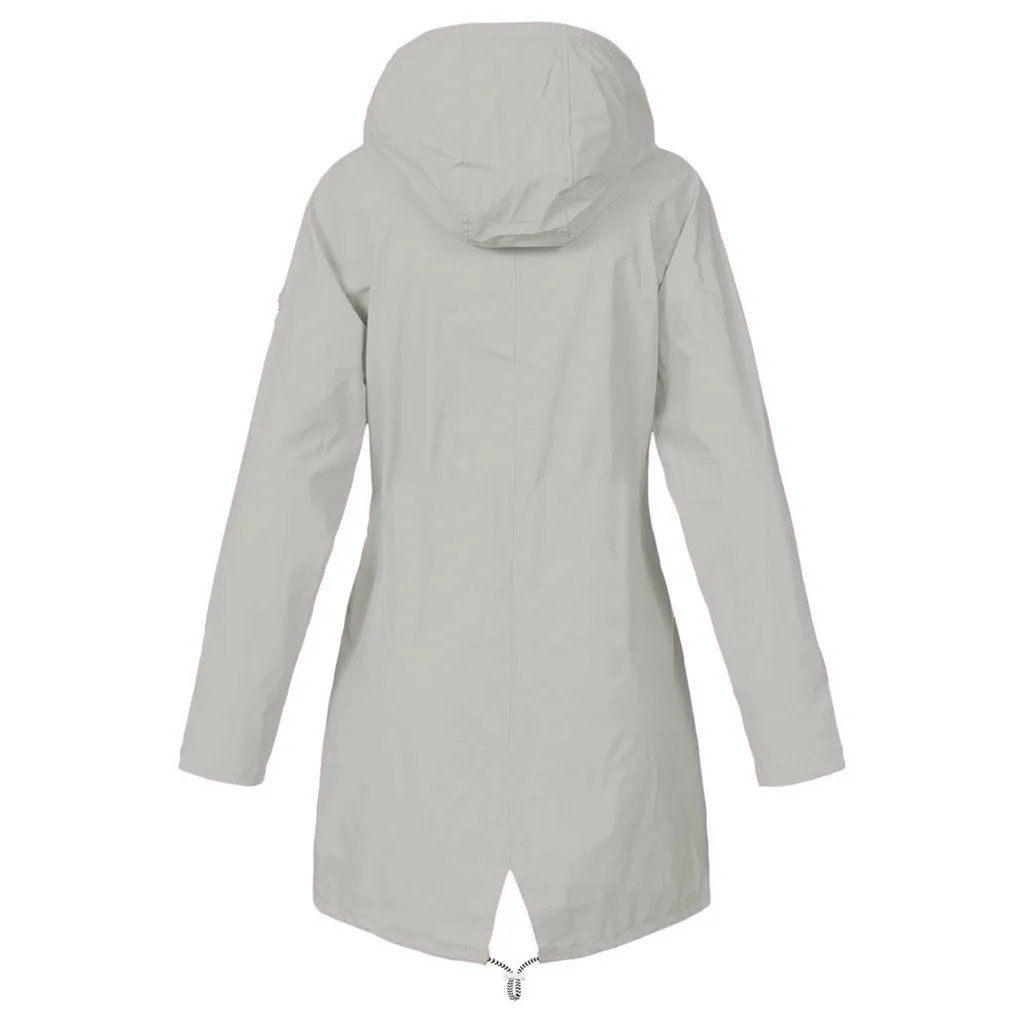 Женский однотонный дождевик для улицы размера плюс, водонепроницаемая ветрозащитная Свободная куртка с капюшоном