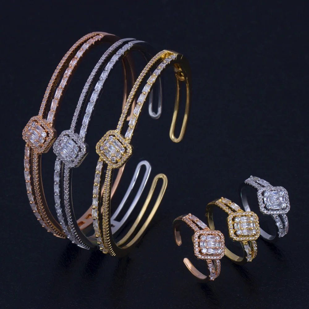 Свадебный комплект ювелирных изделий для невесты в африканском стиле, роскошный комплект с микро покрытием, багет, кубический циркон, регулируемый браслет, кольцо, набор, специальный дизайн
