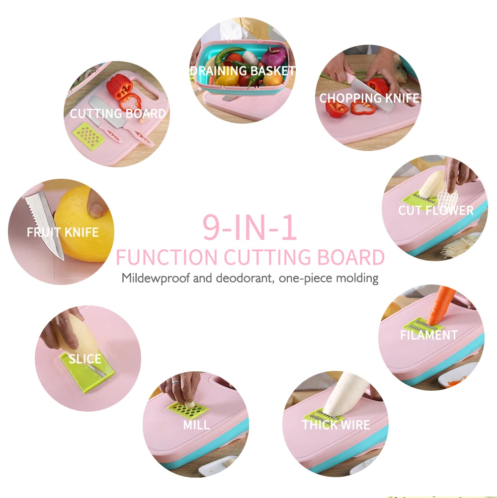 Features: Very creative and convenient, can help you to complete the cutting quickly, different types of blade, can be replaced so you can choose according to your preferences.For example, there are filaments and thick filaments, thick and thin slices, or you can grind garlic, make potato chips, etc. Storage in the Side Anti-skid collecting box, handle and grind grater, ABS food grade material, fine workmanship, no rough edges. There is also a receive slot of collecting the blade, convenient and neat, easy to switch more convenient. Save Time and Money To solve at ordinary times in the kitchen chopping vegetables tedious, time-consuming to spend a lot of time on the chopping vegetables, the household garlic shredder is such a fast and convenient kitchen tool, a variety of cutting way of shredder, makes you more easy and convenient in the kitchen. Description 100% brand new and high quality with competitive price. •Food grade PP material,safety and health,colorful color,frosted surface design,to avoid slippage when chopping. •Product name:Multifunctional Grater Folding Cutting Board •Material:Food grade pp •Size: as the picture Package Included: •1 x Flexible cutting board