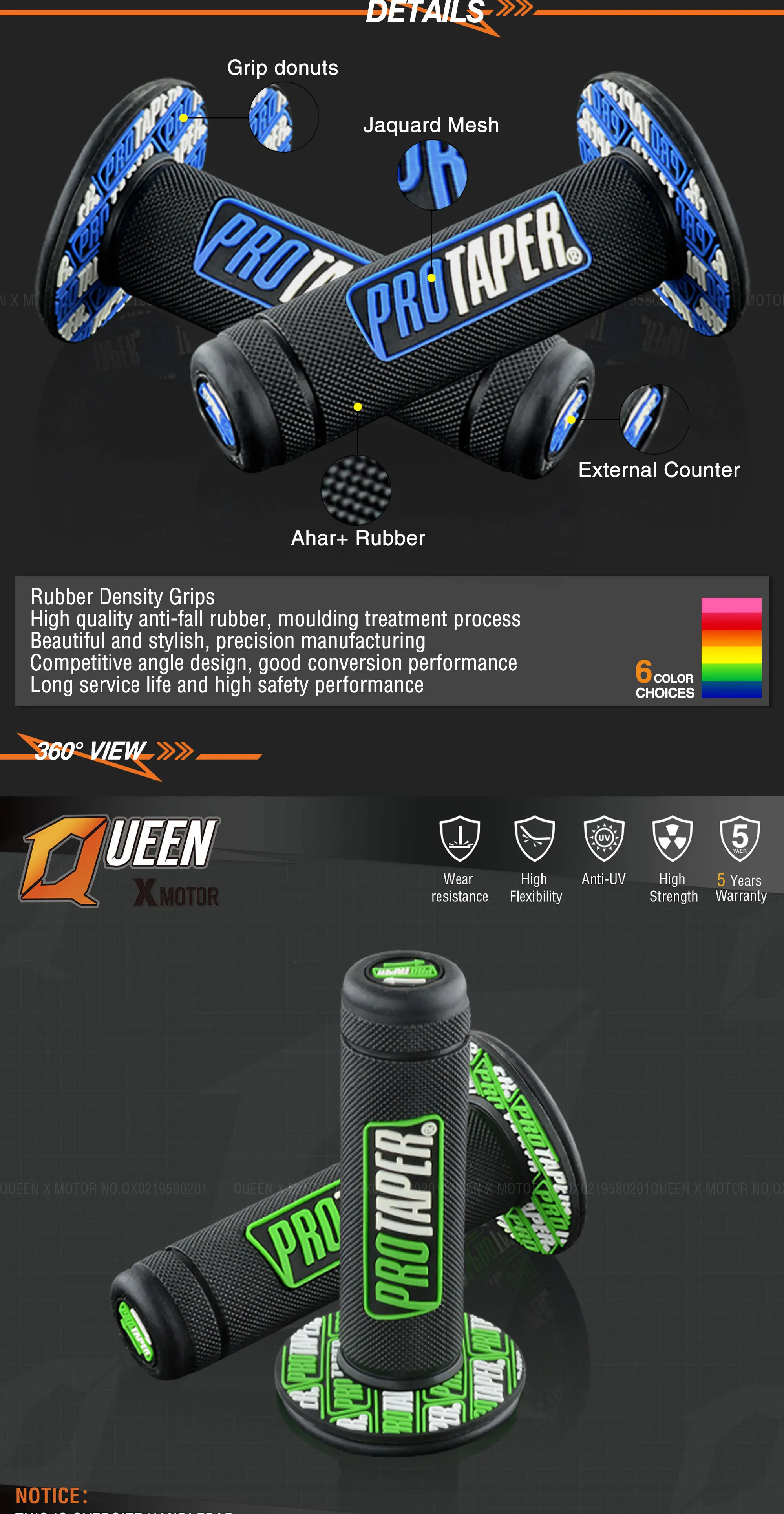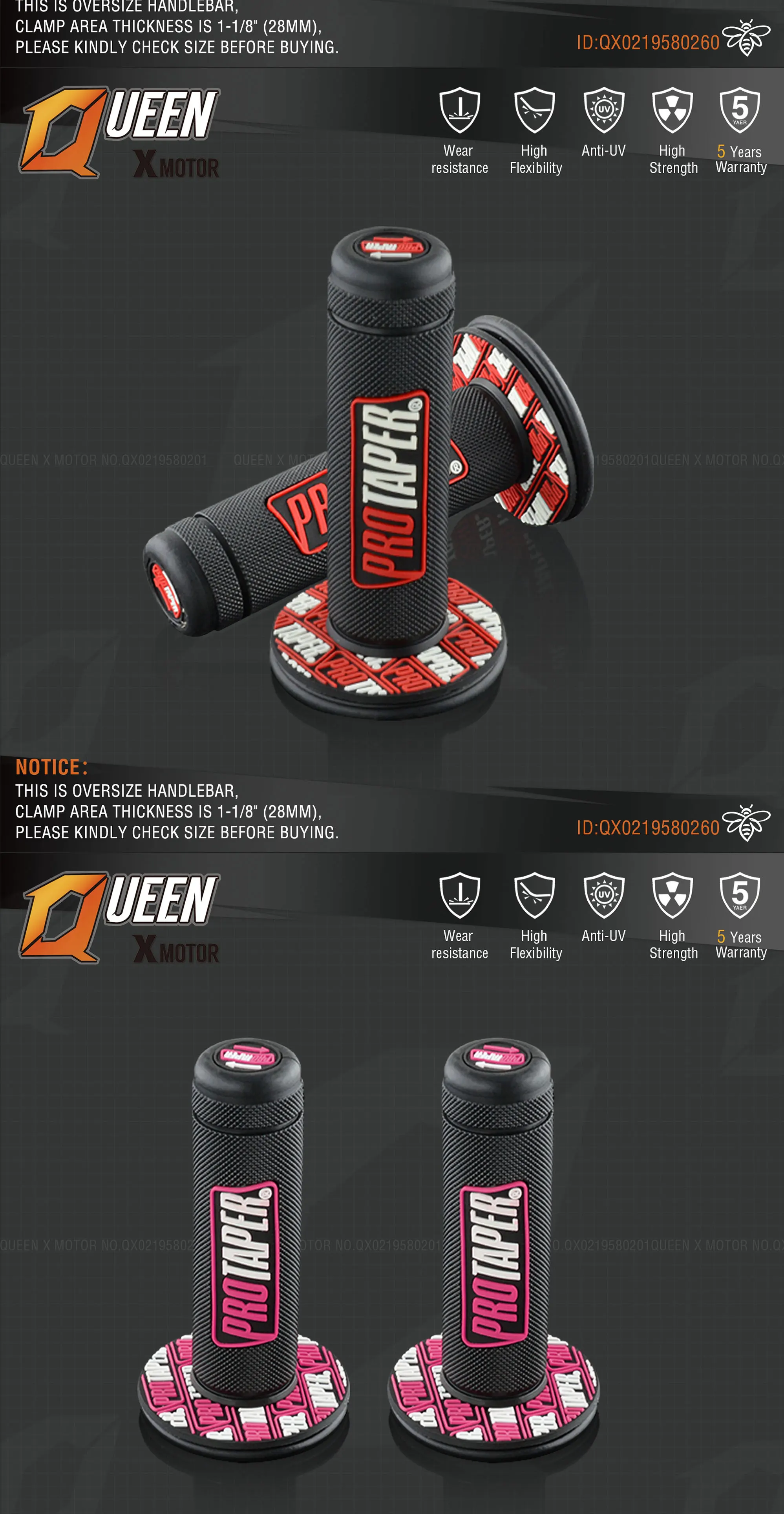 Дополнительный цвет: зеленый/оранжевый/желтый/красный/синий/розовый Диаметр отверстия: 22 мм для левой стороны, 25 мм для правой стороны Левая сторона-7/8 ", правая сторона-1" для закручивания газа дроссельной заслонки Не подходит для большого пальца дроссельной заслонки, как квадроциклы, вам может потребоваться получить 2 комплекта для ATV Подходит для большинства мотоциклов.
